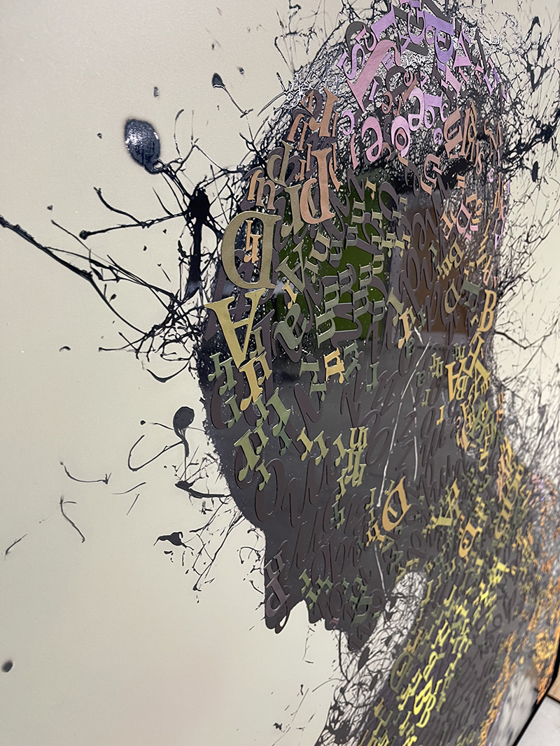 Tecnica mista su alluminio, vernice con lettere materiche