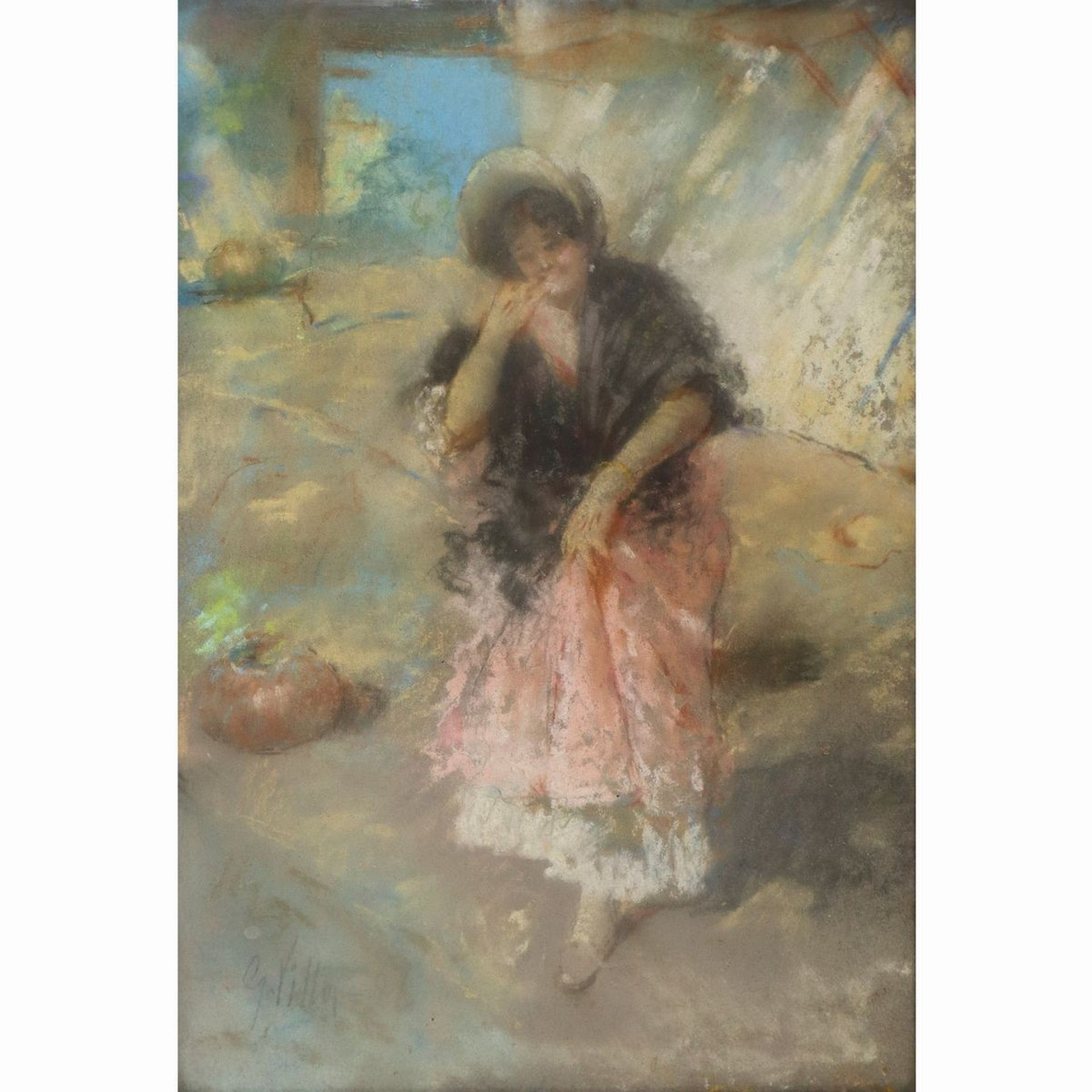 Goffredo Villa (1922 - 1944) - Figura di donna Cm 39 x 26, in cornice 47 x 34 cm Pastello su cartone Firmato in basso a sinistra G.Villa