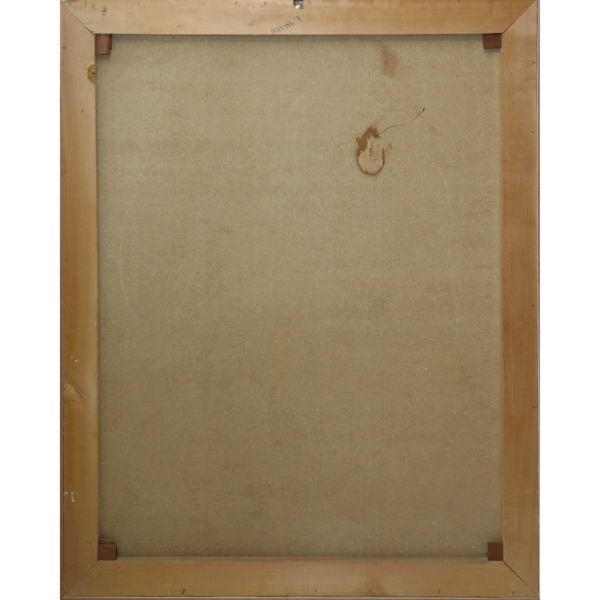Raf Occhipinti (Comiso 1933) - Donna con chitarra e fiori, foro alla tela