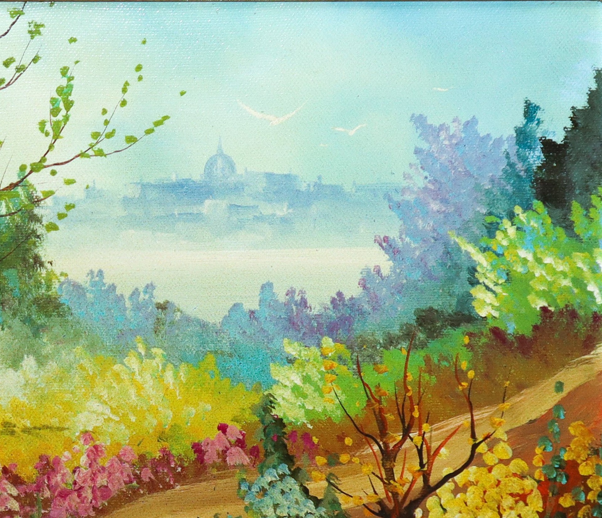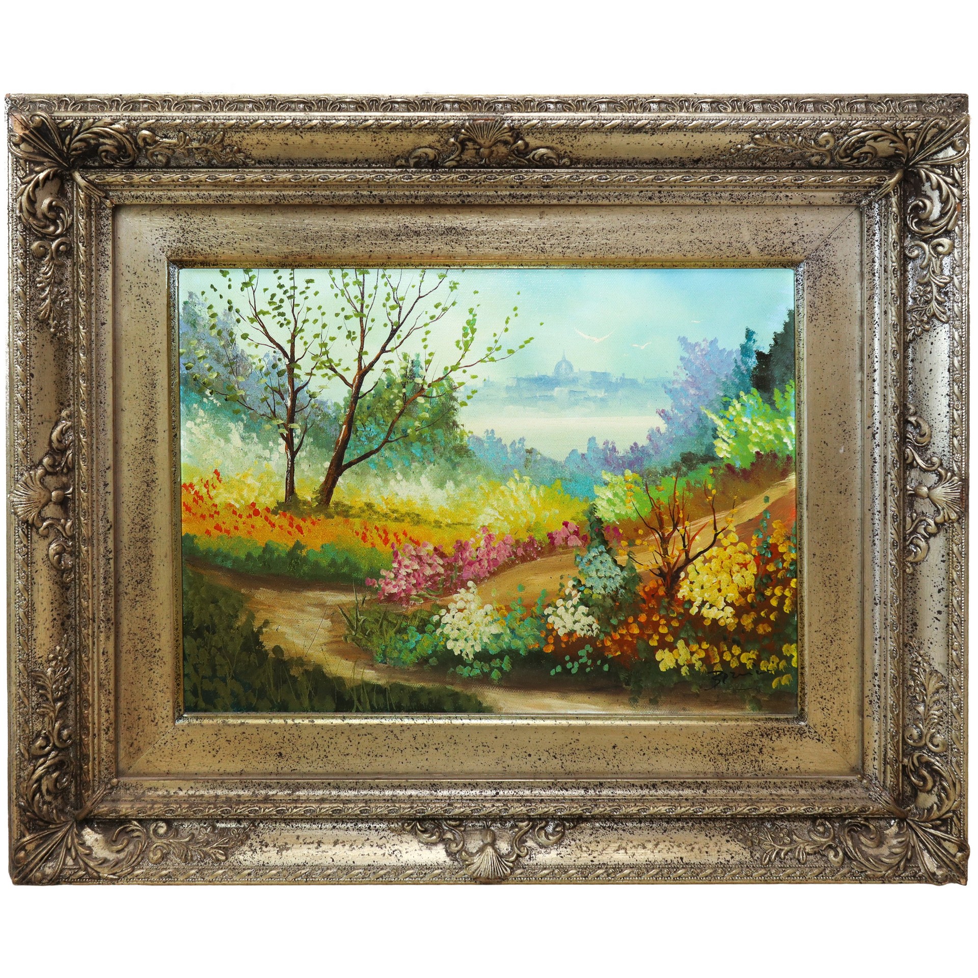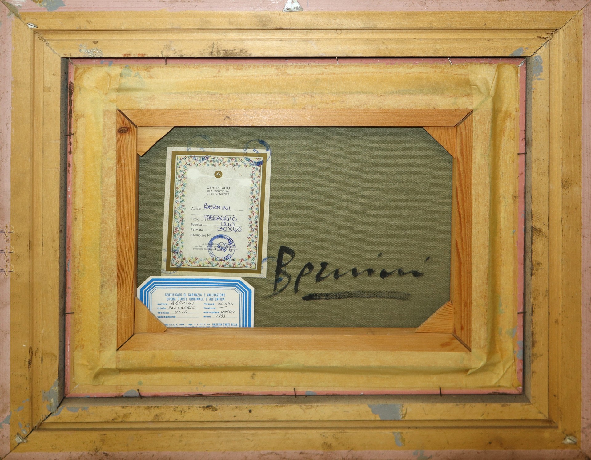 Paesaggio h cm 30X40 in cornice h cm 62X42 olio su tela Firmato in basso a destra Bernini. Sul retro firmato