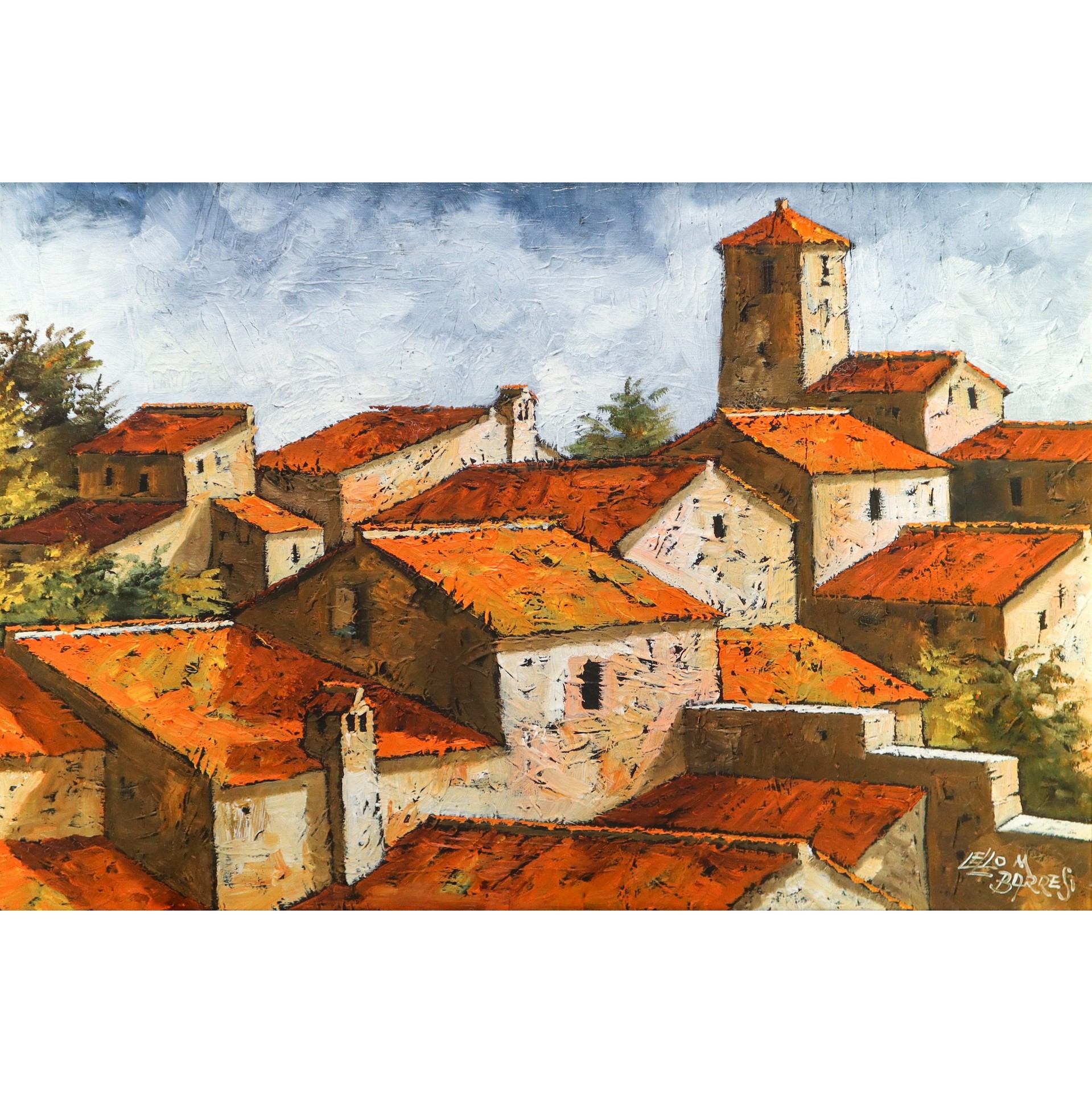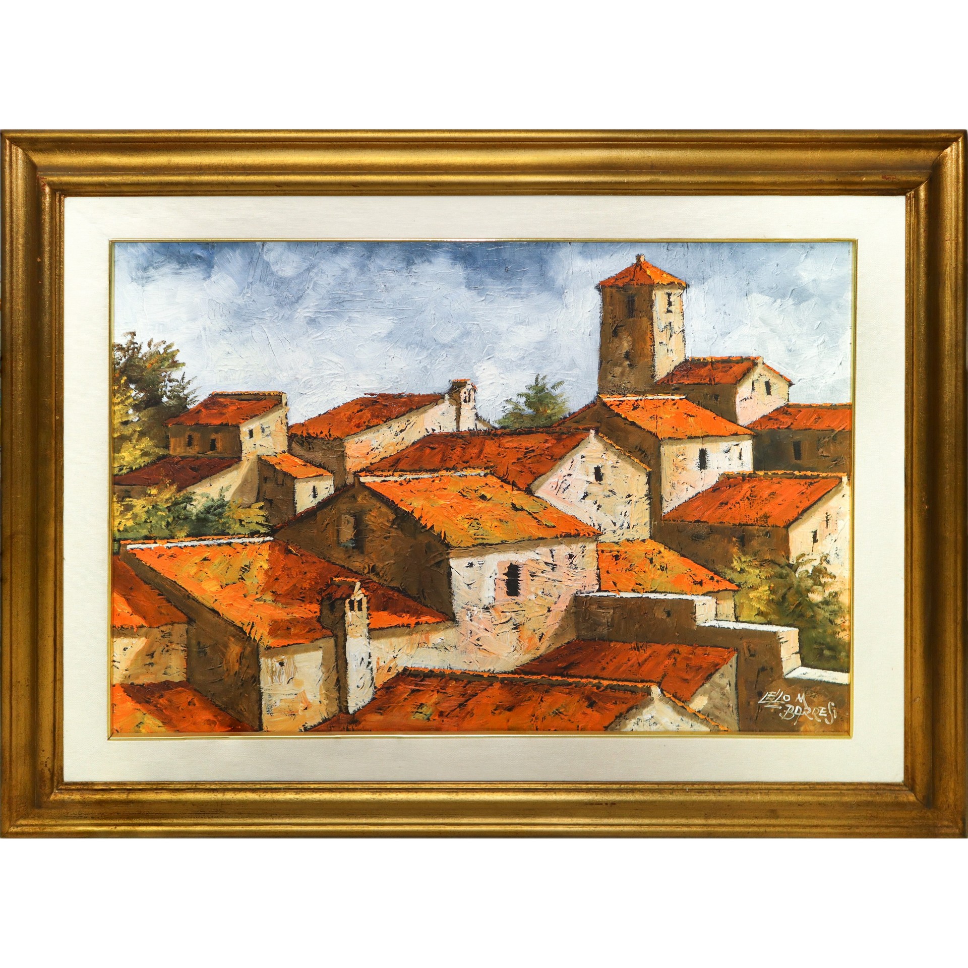 Lello M. Barresi (Palermo 1932) - Tetti di case h cm 50X70 in cornice h cm 70X90 olio su tela Firmato in basso a destra