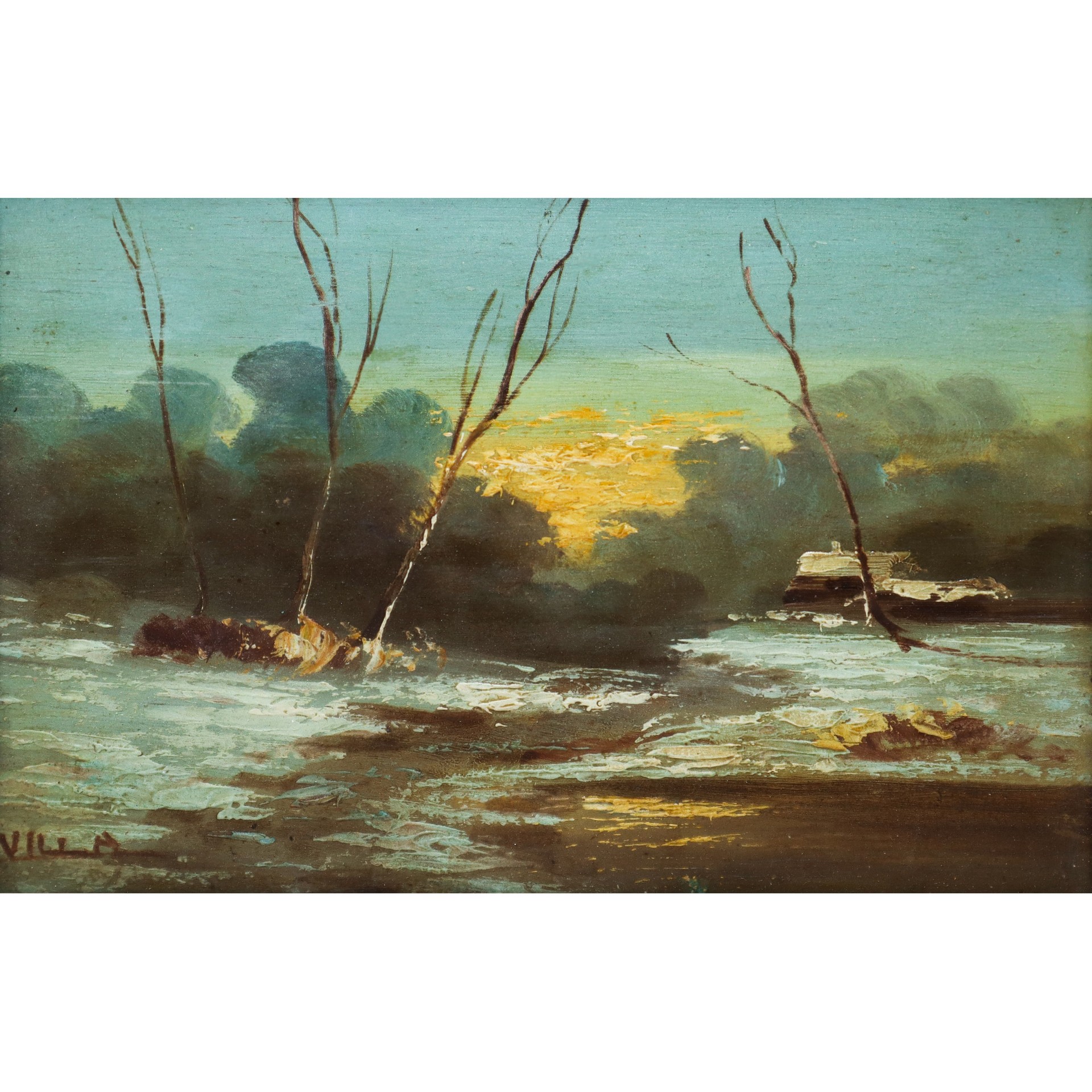 Antonio Villa (1883 - 1962) - Paesaggio innevato h cm 20X26 in cornice h cm 37X43 Olio su tavoletta Firmato in basso a sinistra