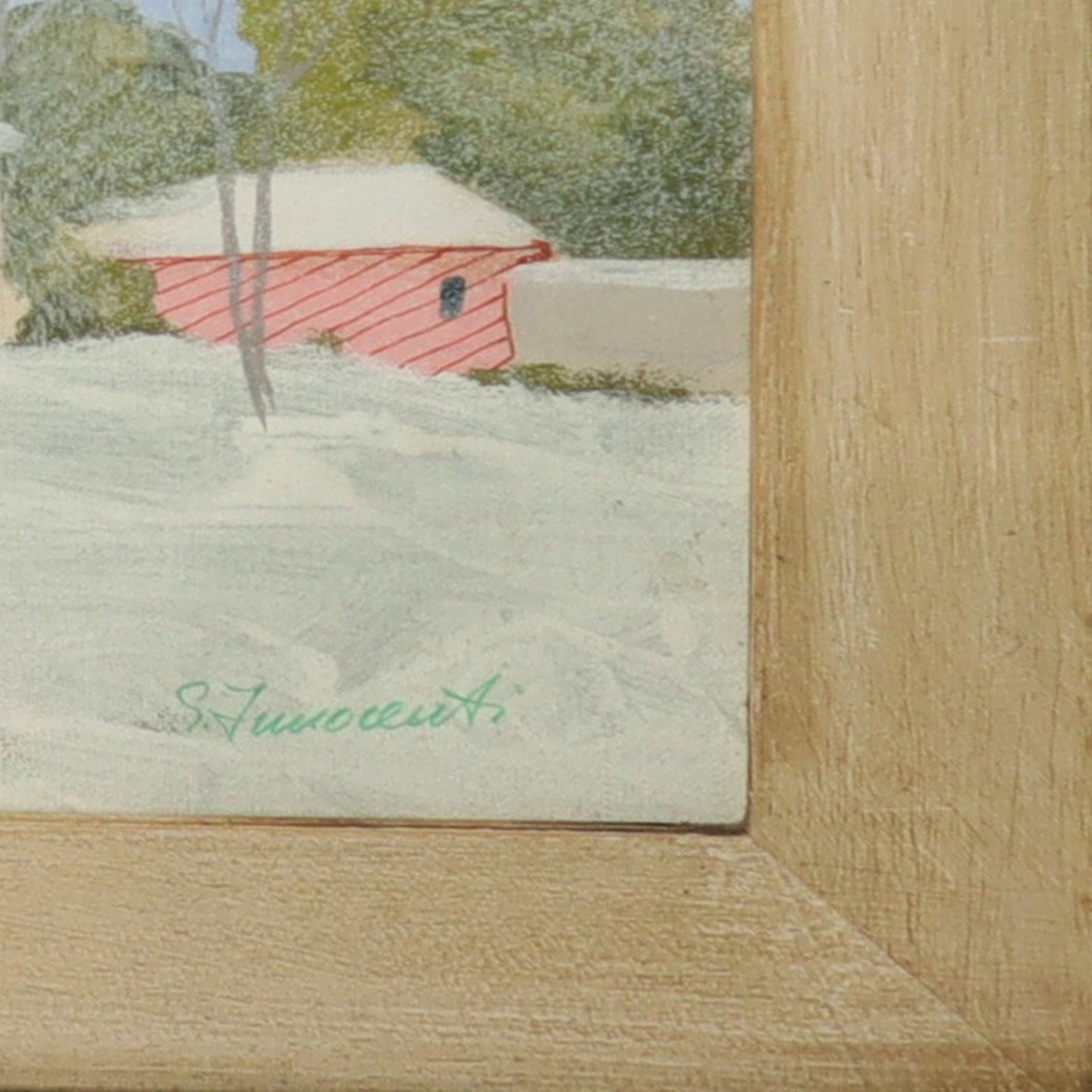 Giuseppe Innocenti (Scarperia di Mugello) - Paesaggio innevato 24 x 34 cm,in cornice 47 x 57 cm Olio su cartoncino Firmato al fronte in basso a destra