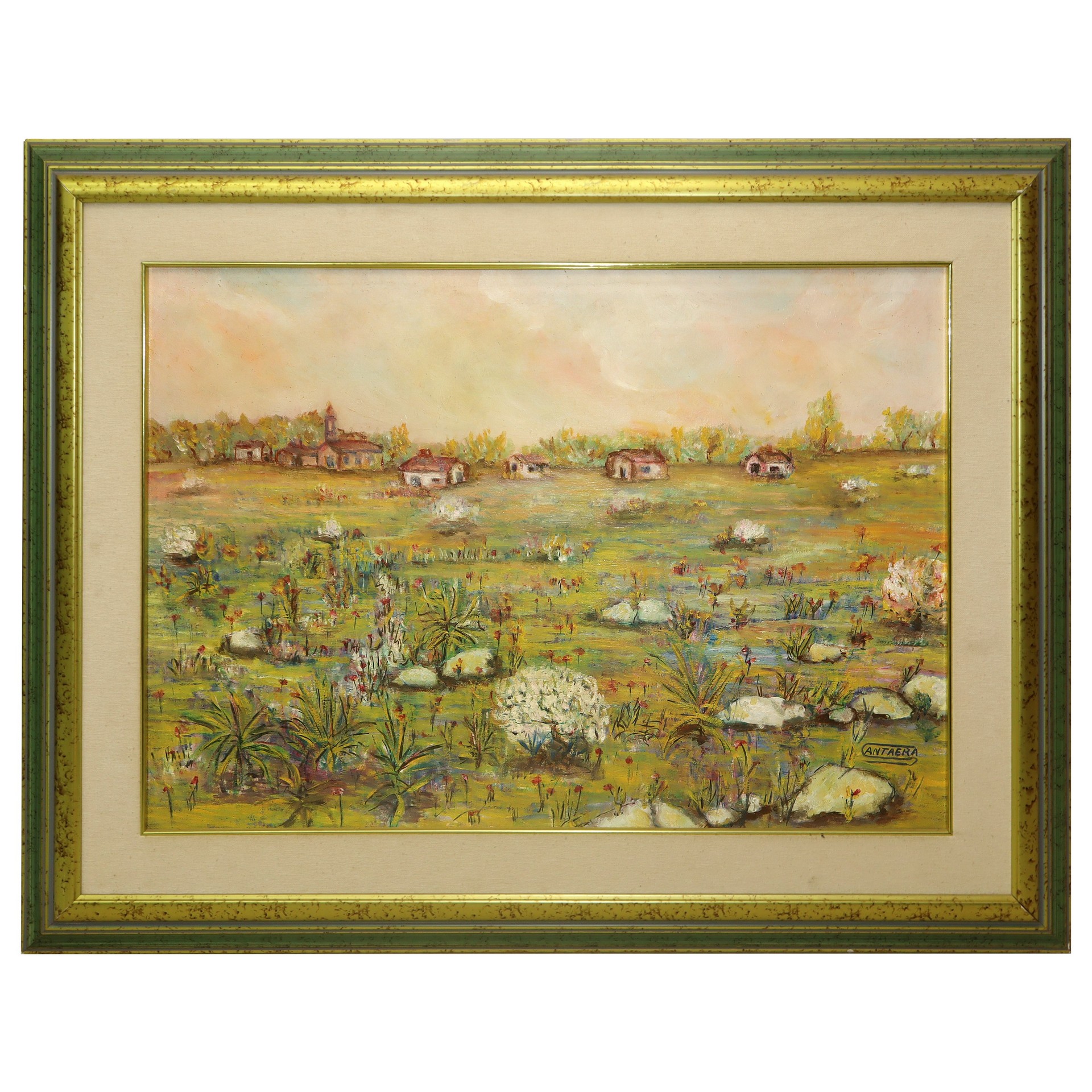 Campo con case cm 50x70 in cornice cm 70x90 Olio su tela Firmato Cantaera