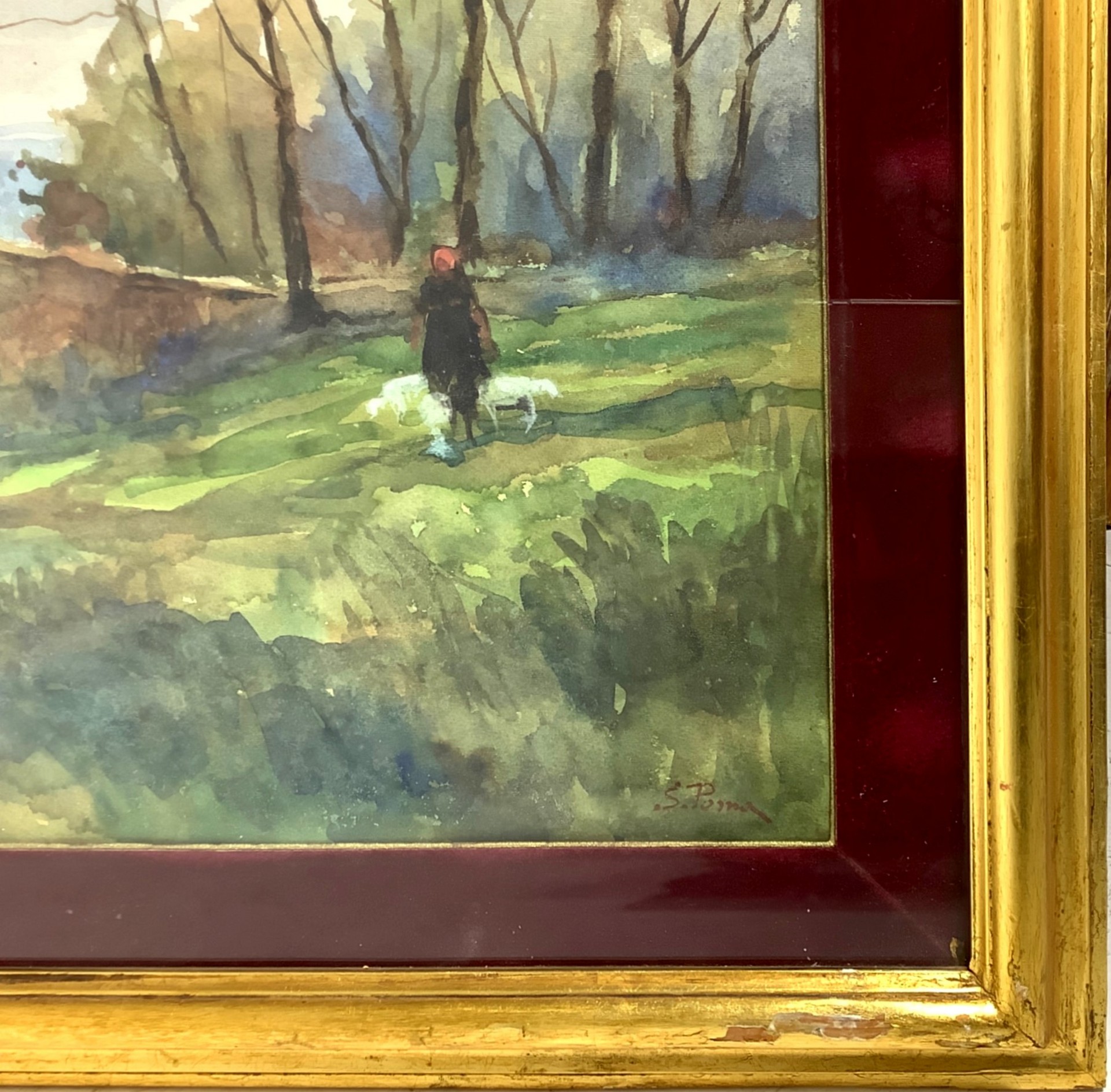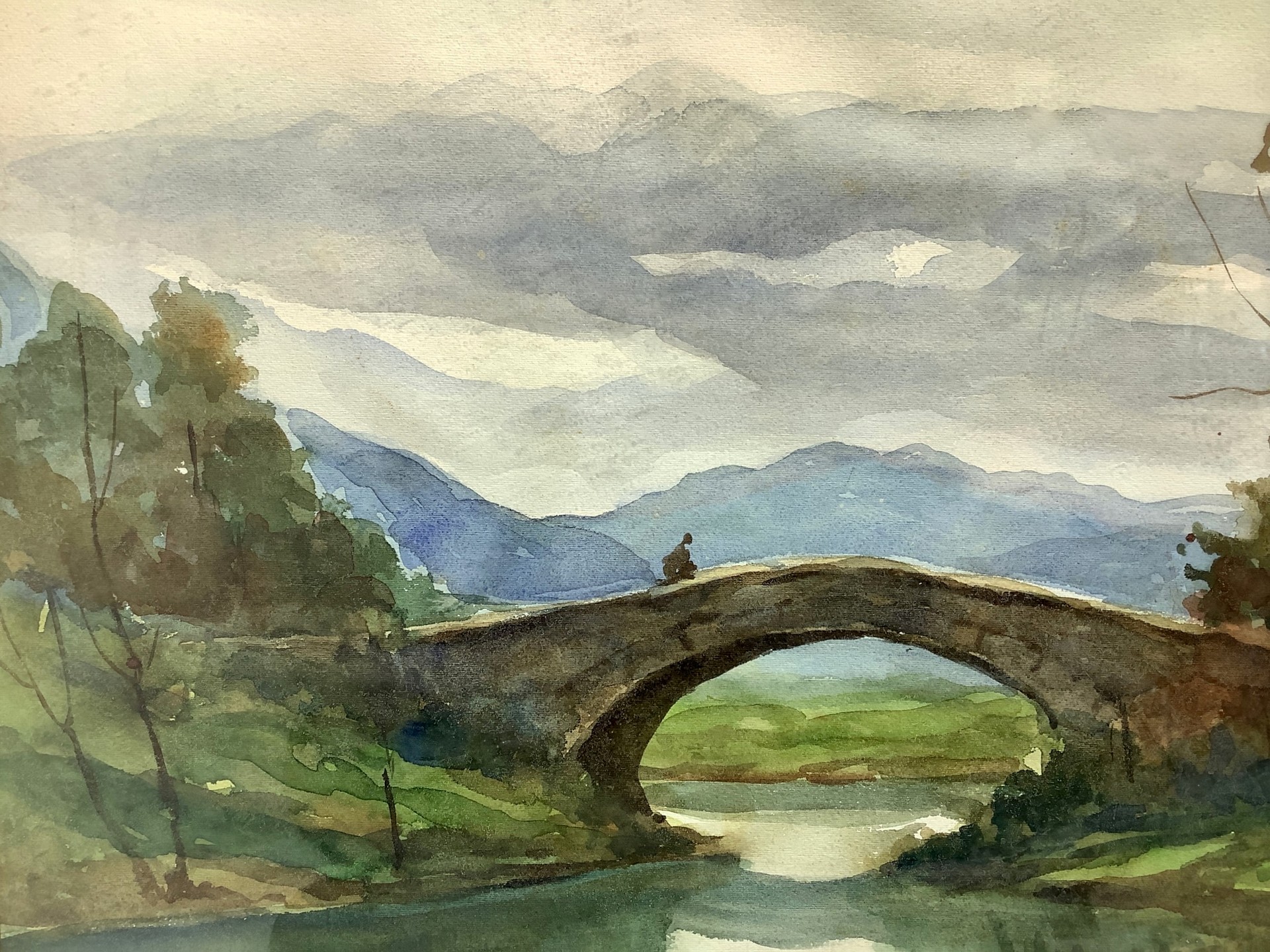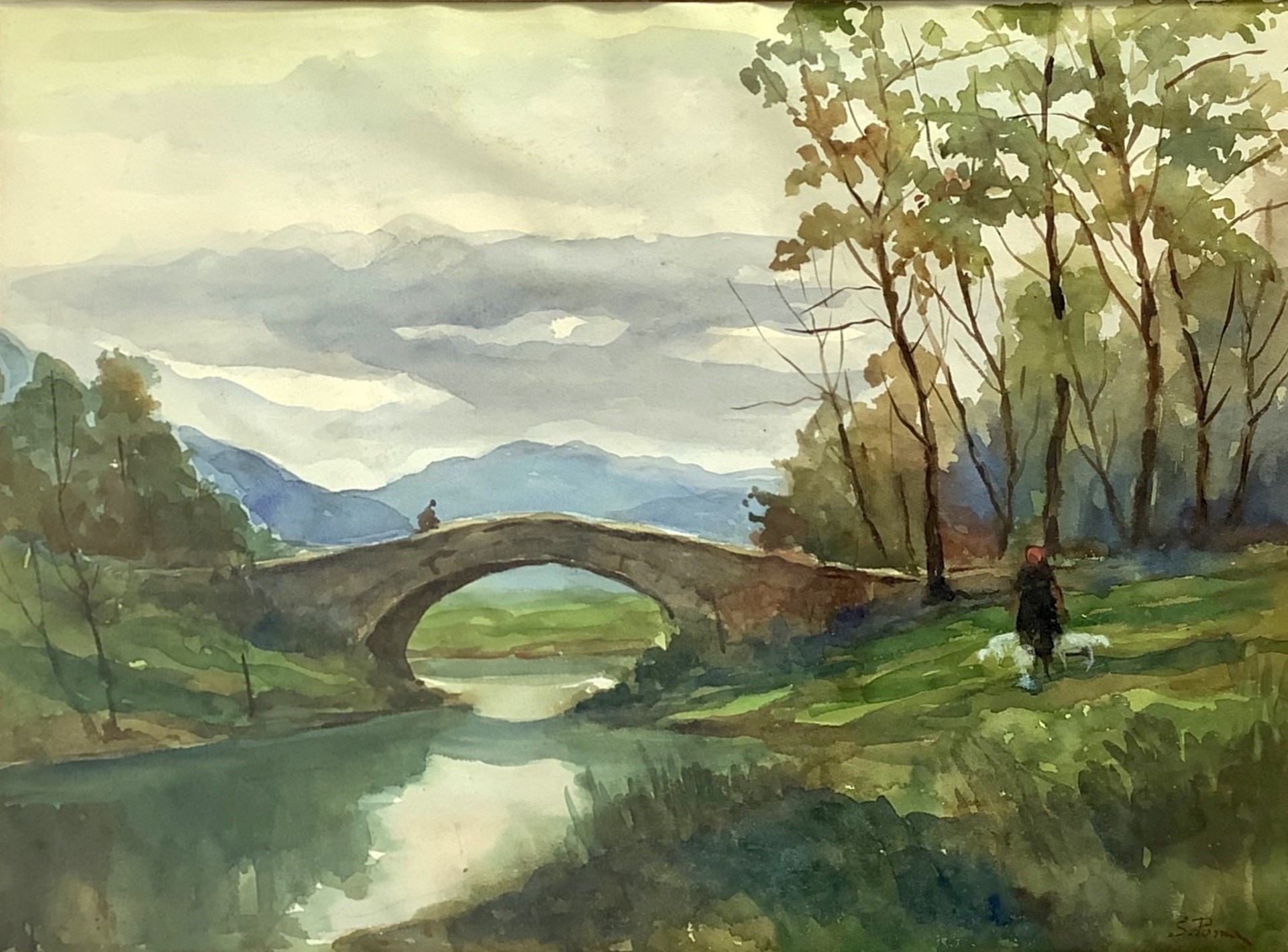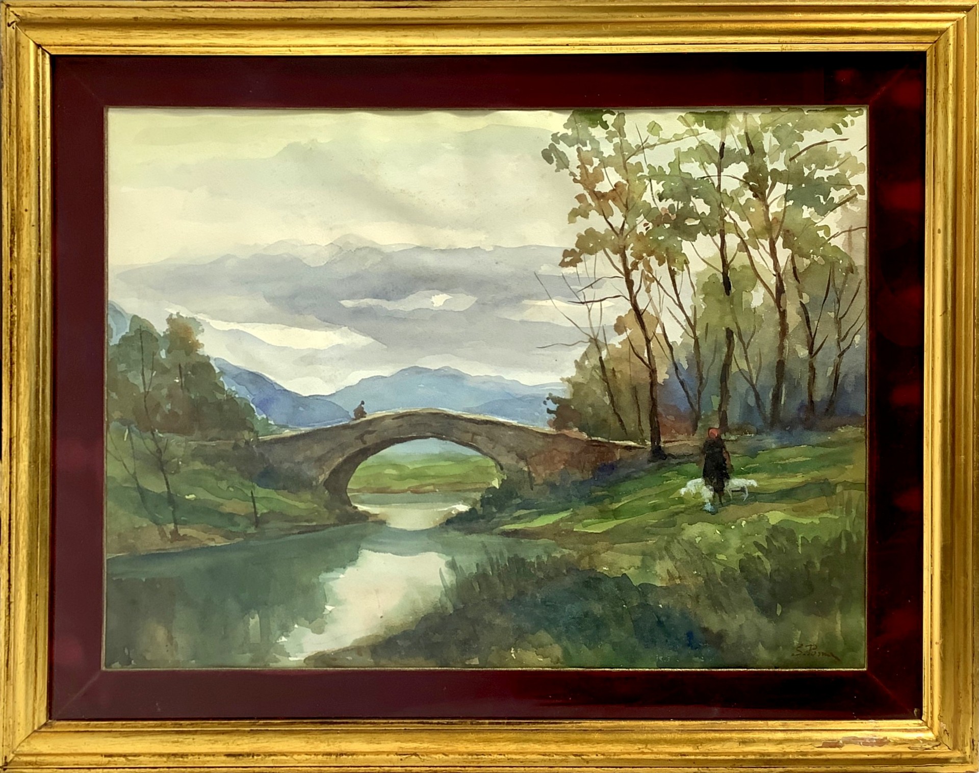 Silvio Poma (1841 - 1932) - Fiume con ponte Cm 50x65, in cornice cm 94 x70 Acquarello su cartoncino firmato Silvio Poma.