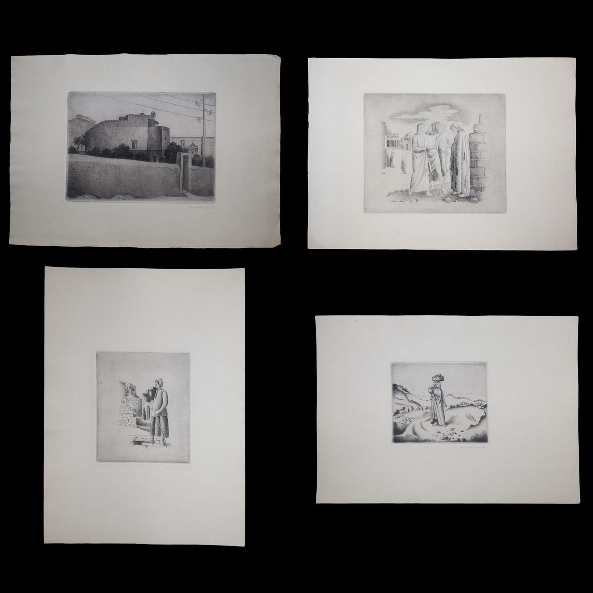 Bruno Bramanti (Firenze 1897 - Fiesole 1957) - N°4 incisioni di personaggi e paesaggi