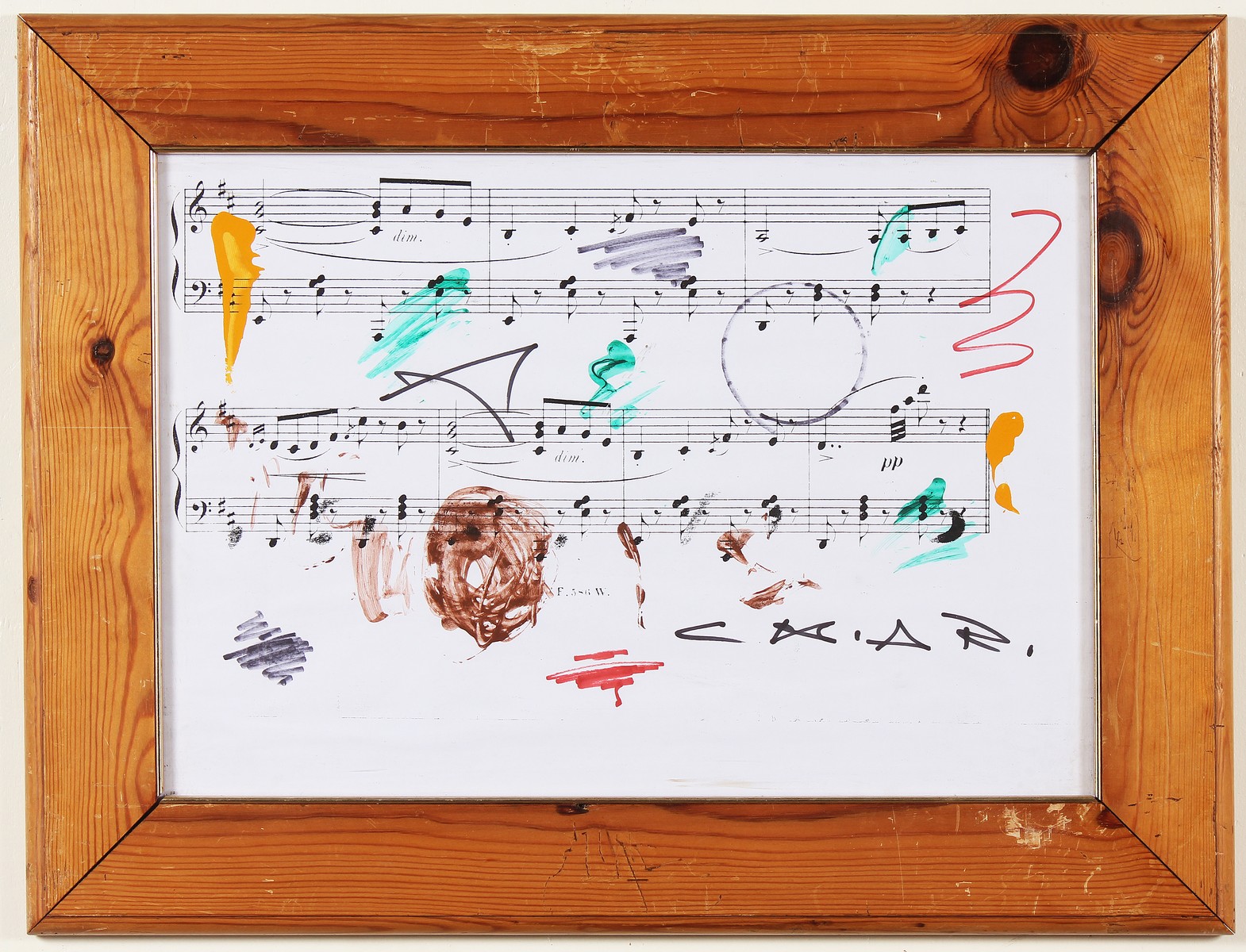 CHIARI GIUSEPPE (1926 - 2007) Spartito. Tecnica mista su carta. Cm 50,00 x 35,00. Firma in basso a destra. Autentica dell' artista su fotografia. Cornice presente