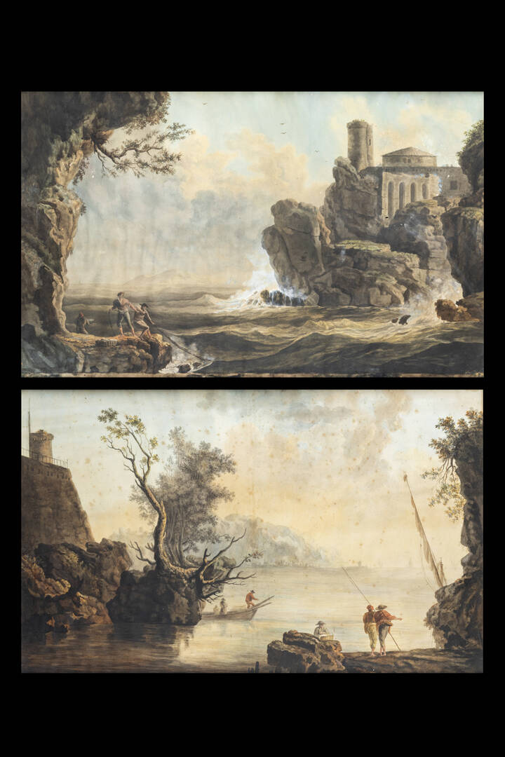PITTORE ANONIMO DEL XVIII SECOLO<BR>Coppia di quadri rappresentanti "Paesaggi"