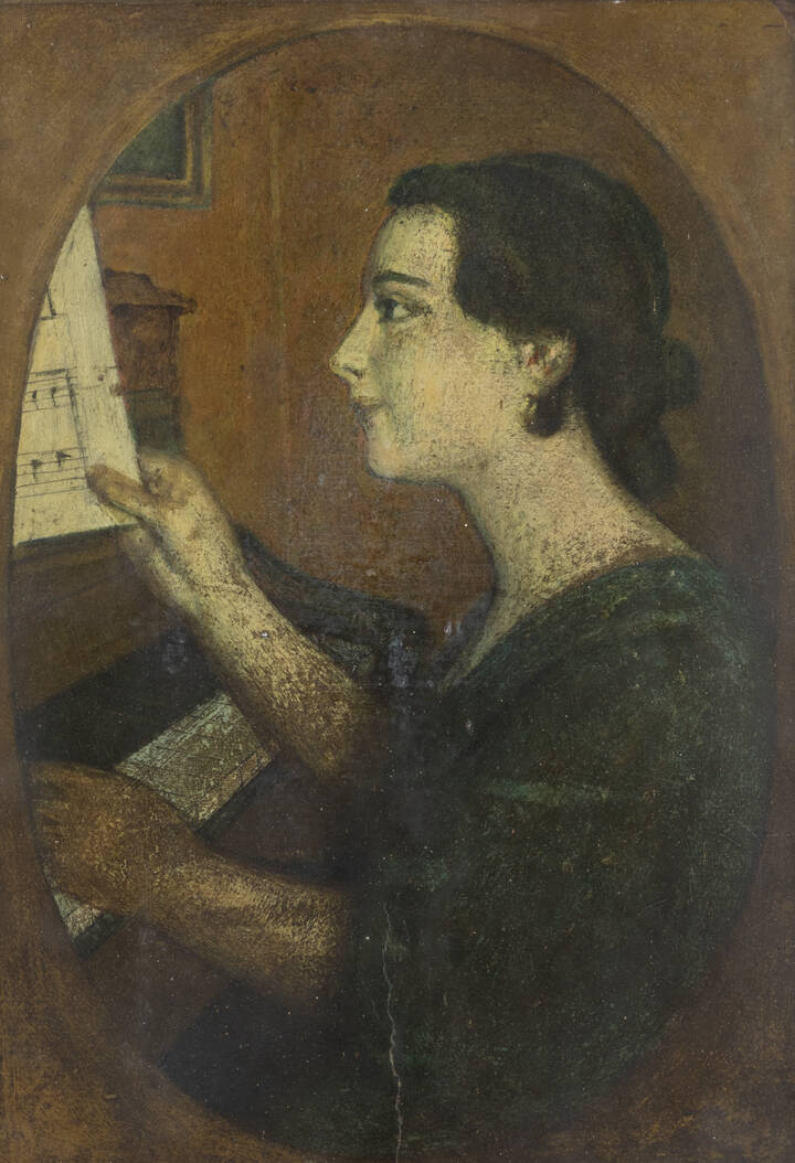 GIACOMO GANDI<BR>Saluzzo (CN) 1846 - 1932 Savigliano (CN)<BR>"Ragazza al pianoforte"