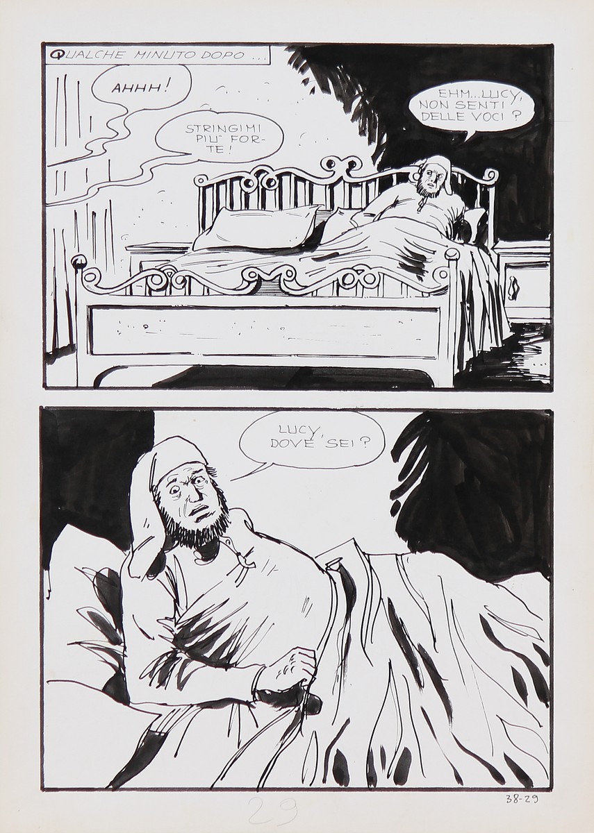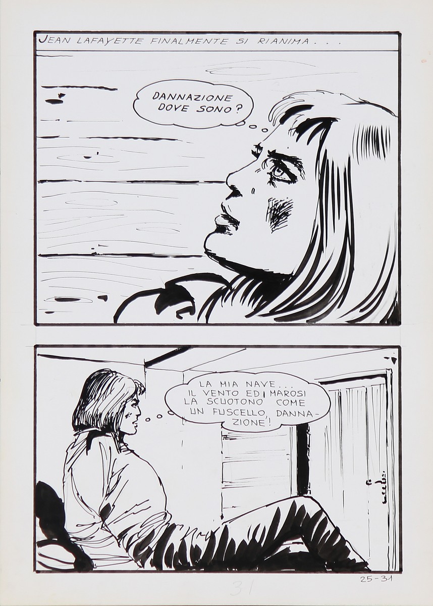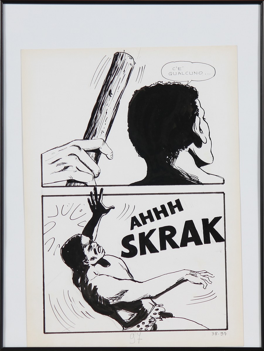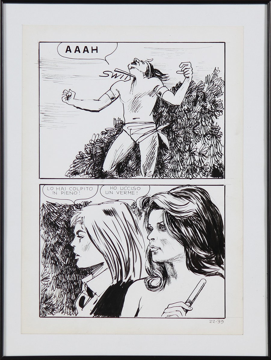 MANARA MILO (n. 1945) Quattro tavole dal fumetto Jolanda De Almaviva. China su cartonciono. Cm 25,00 x 35,00. 1971/74. Cornice presente