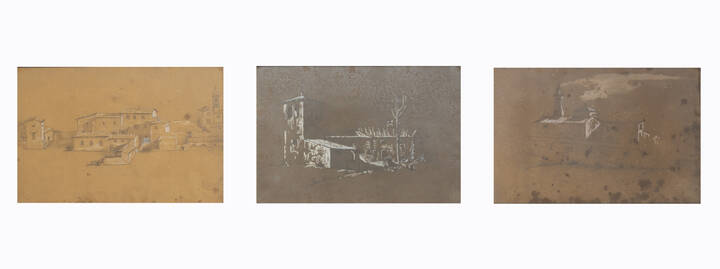 NICCOLO' CANNICCI<BR>Firenze 1846 - 1906<BR>"Trittico di disegni raffiguranti borgate di campagna"