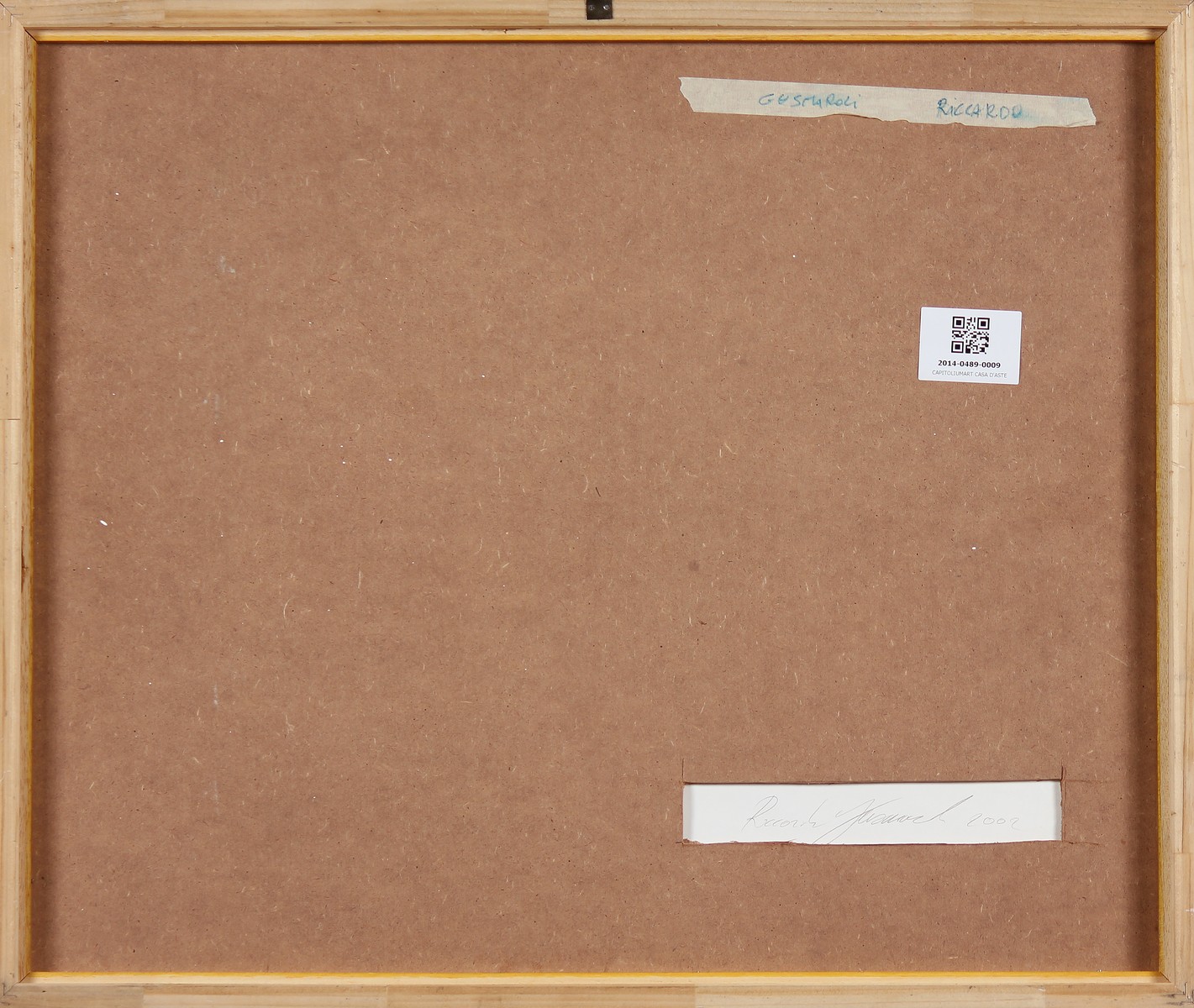 GUSMAROLI RICCARDO (n. 1963) Senza titolo. 2002. Tecnica mista su carta. Cm 40,00 x 51,00. Firma e anno al retro. Cornice presente