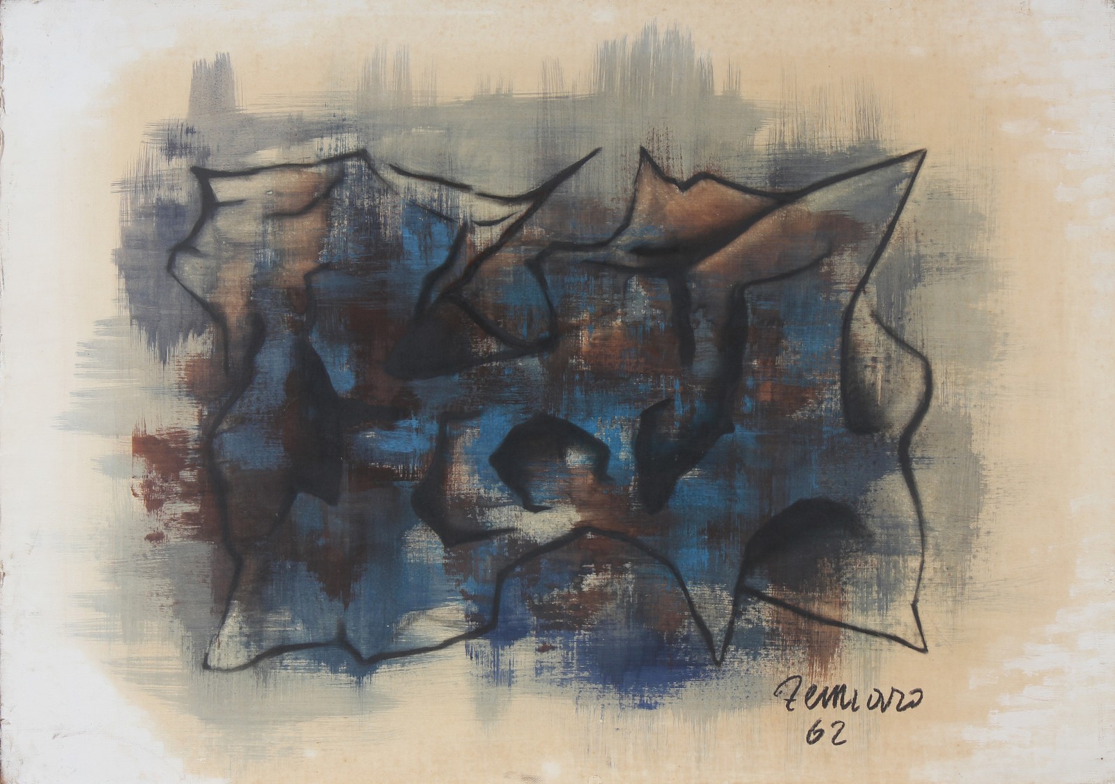 ZENNARO GIORGIO (n. 1926) Senza titolo. 1962. Tecnica mista su carta incollata su tela. Cm 100,00 x 71,00. Firma e anno in basso a destra.