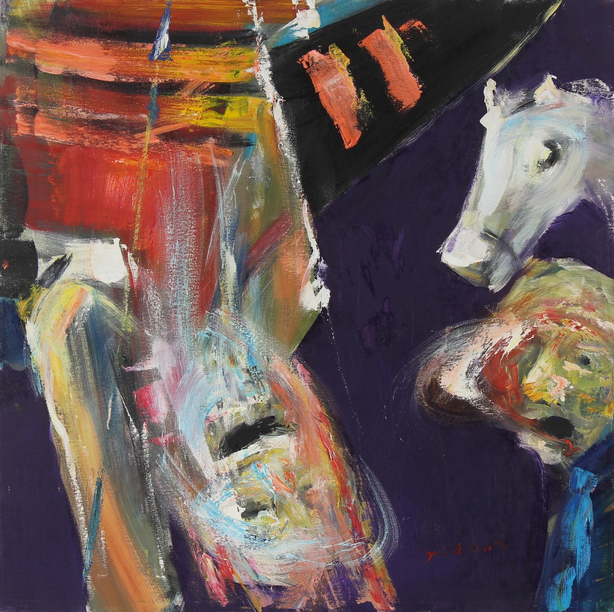 TIRLA GHEORGHE (n. 1965) Senza titolo. Olio su tela . Cm 70,00 x 70,00. Firma in basso a destra.
