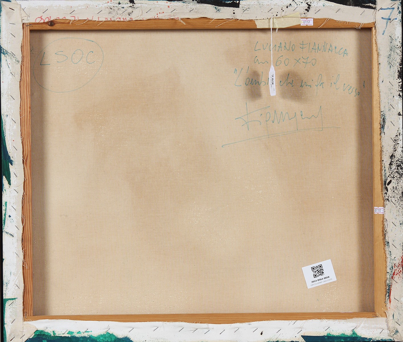FIANNACCA LUCIANO (n. 1951) L' ombra che mi fa il verso. Olio su tela . Cm 70,00 x 60,00. Al retro firma e titolo.