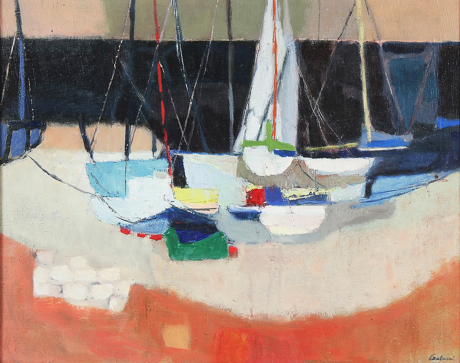 PAULUCCI ENRICO (1901 - 1999) Barche sulla spiaggia. Olio su tela . Cm 70,00 x 55,00. Firma in basso a destra. Al retro titolo e firma. Opera archiviata presso l'Archivio delle opere di Enrico Paulucci, come da documentazione fotografica allegata all'opera riportante il relativo numero d'inventario. Cornice presente