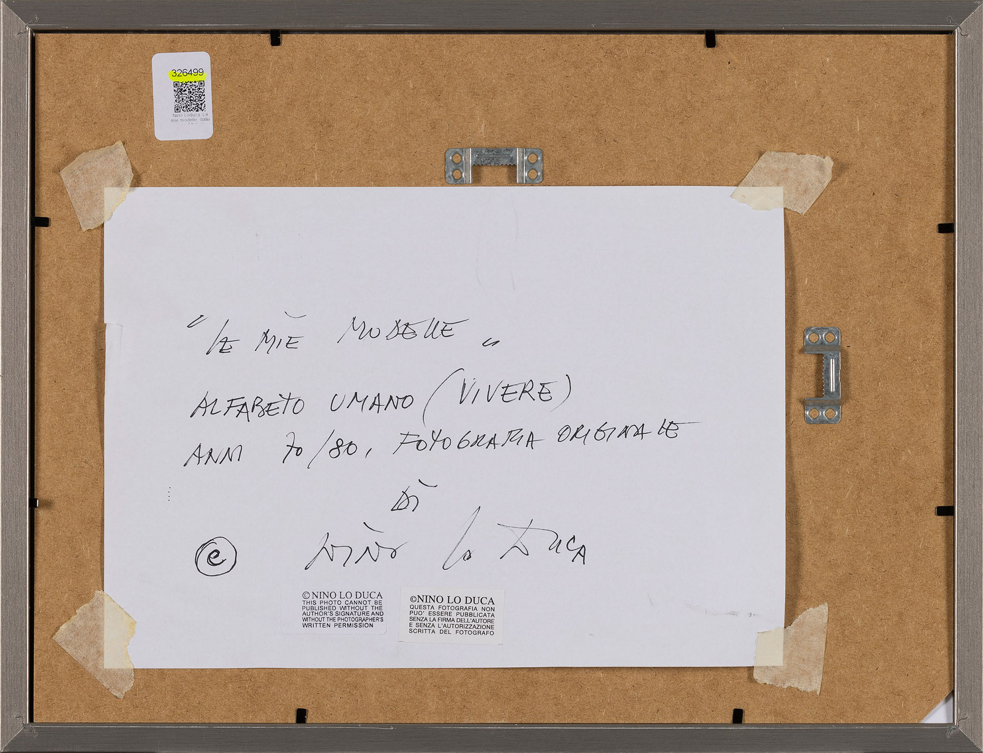 firmata in basso sul passepartout, titolata e firmata al retro , timbro del fotografo al retro, opera in cornice