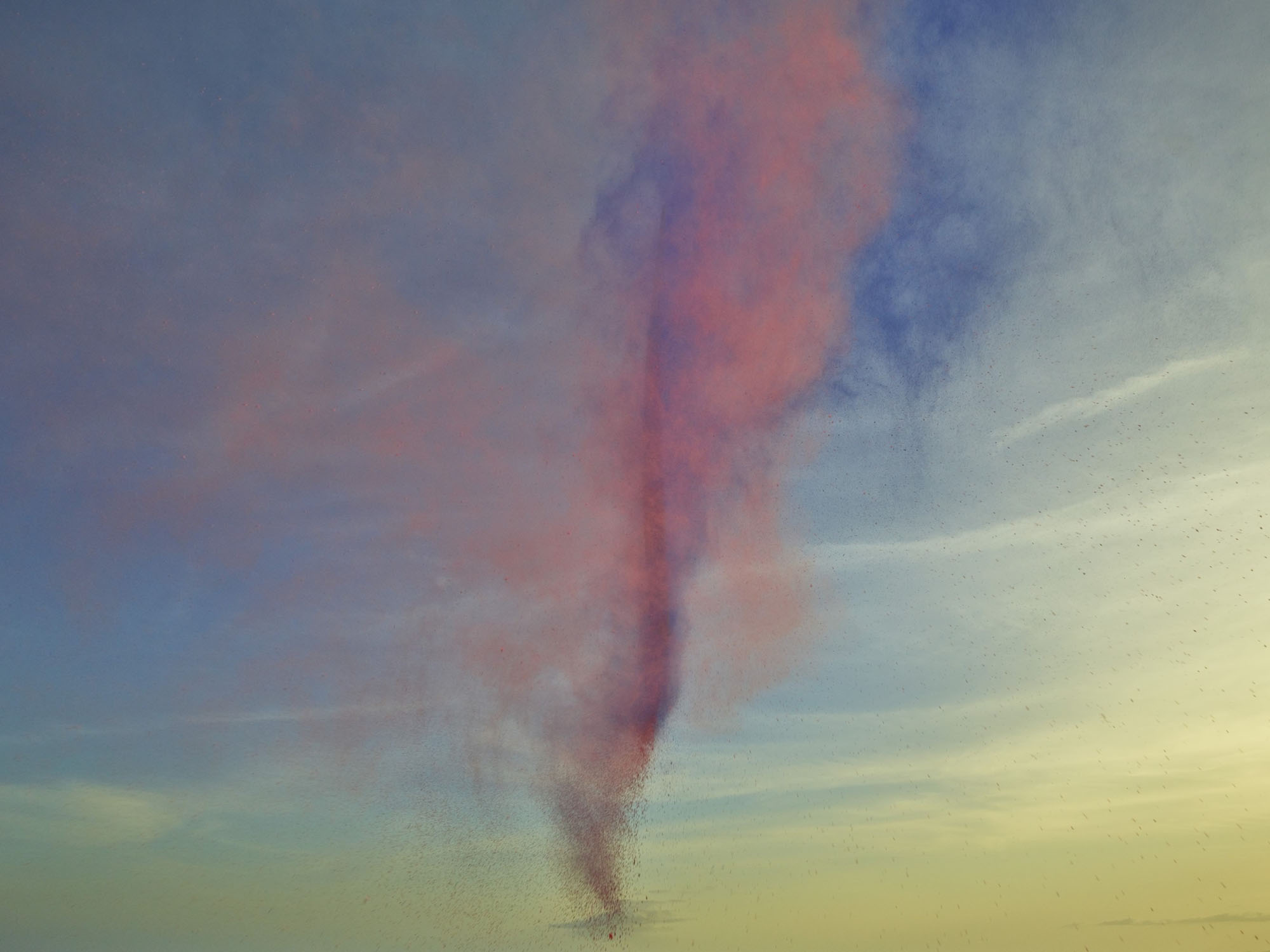 L’opera è corredata da Certificato di Autenticità rilasciato dall’artista., Pigmenti organici su elementi geometrici all'aria aperta. Il vento è l'attore principale, mentre la casualità è il campo comune.