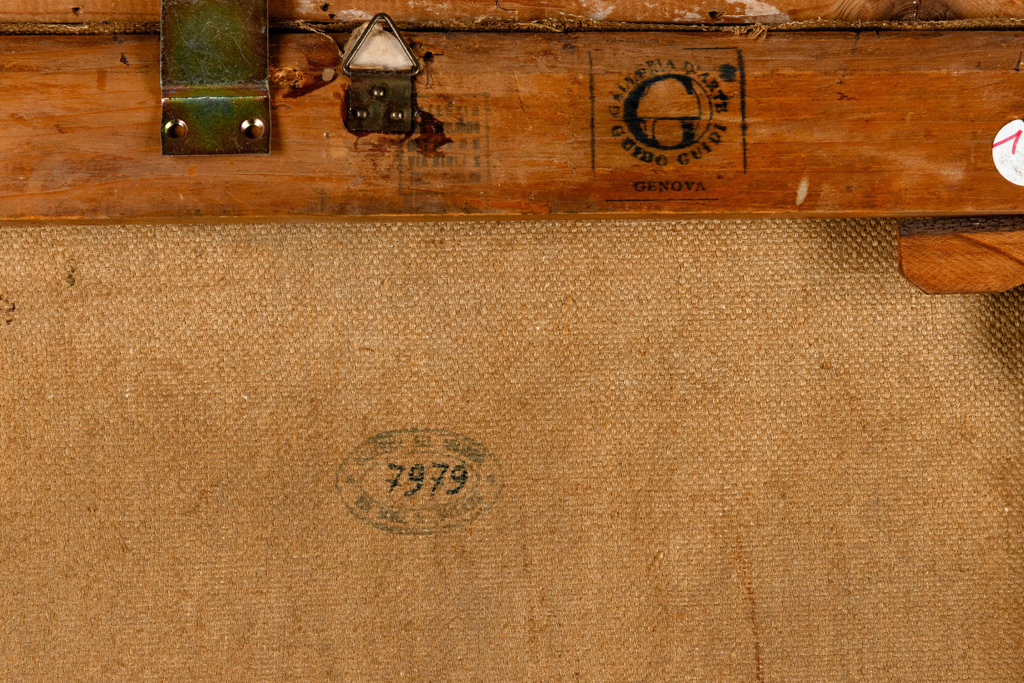 firmato e datato in basso a destra, Timbro al retro della Galleria Guido Guidi, Genova, Timbro al retro della Galleria del Milione, Milano