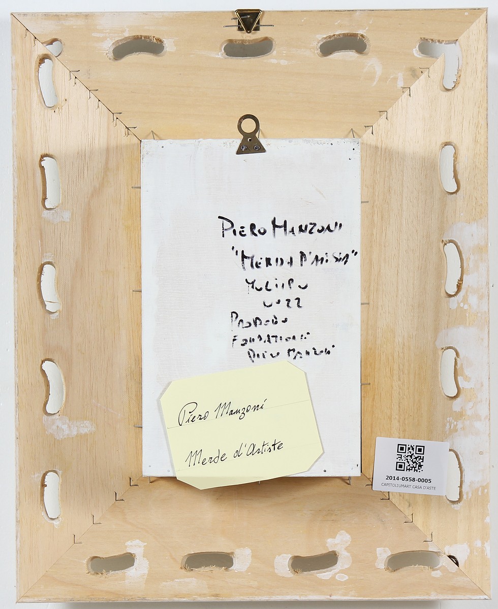 MANZONI PIERO (1963 - 2013) Merda d'artista. Multiplo. Cm 7,00 x 6,00. Multiplo n 22. Firma a stampa sulla confezione. Cornice presente