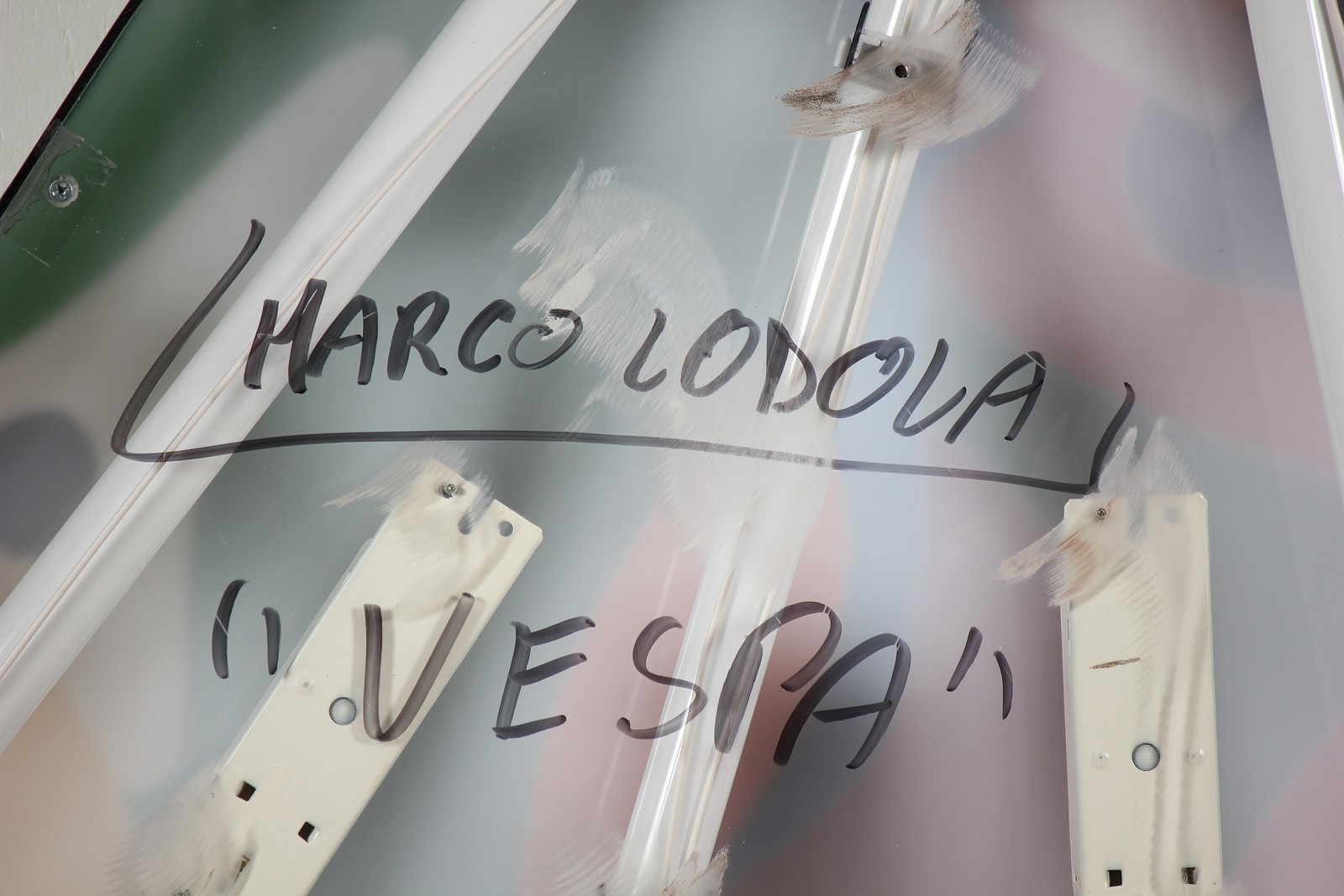 LODOLA MARCO (n. 1955) Vespa. Tecnica mista su plexiglass. Cm 85,00 x 85,00. Firma e titolo sotto la base.