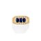 uno traforato, con al centro rubino taglio ovale e diamanti taglio brillante a decoro, e l'altro con al centro tre zaffiri taglio ovale e diamanti taglio huit-huit a decoro.