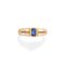 al centro zaffiro taglio smeraldo di ct 0,55 circa, ai lati due file di diamanti taglio baguette per totale ct 0,50 circa.