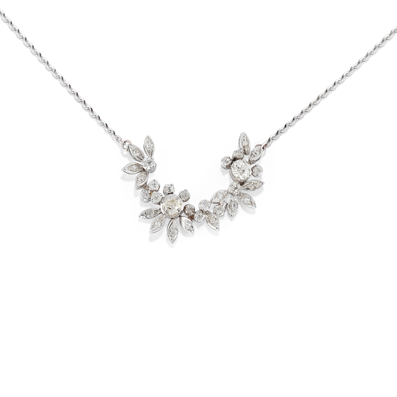 con centrale a motivo floreale decorato da diamanti taglio vecchio per totale ct 1,00 circa.