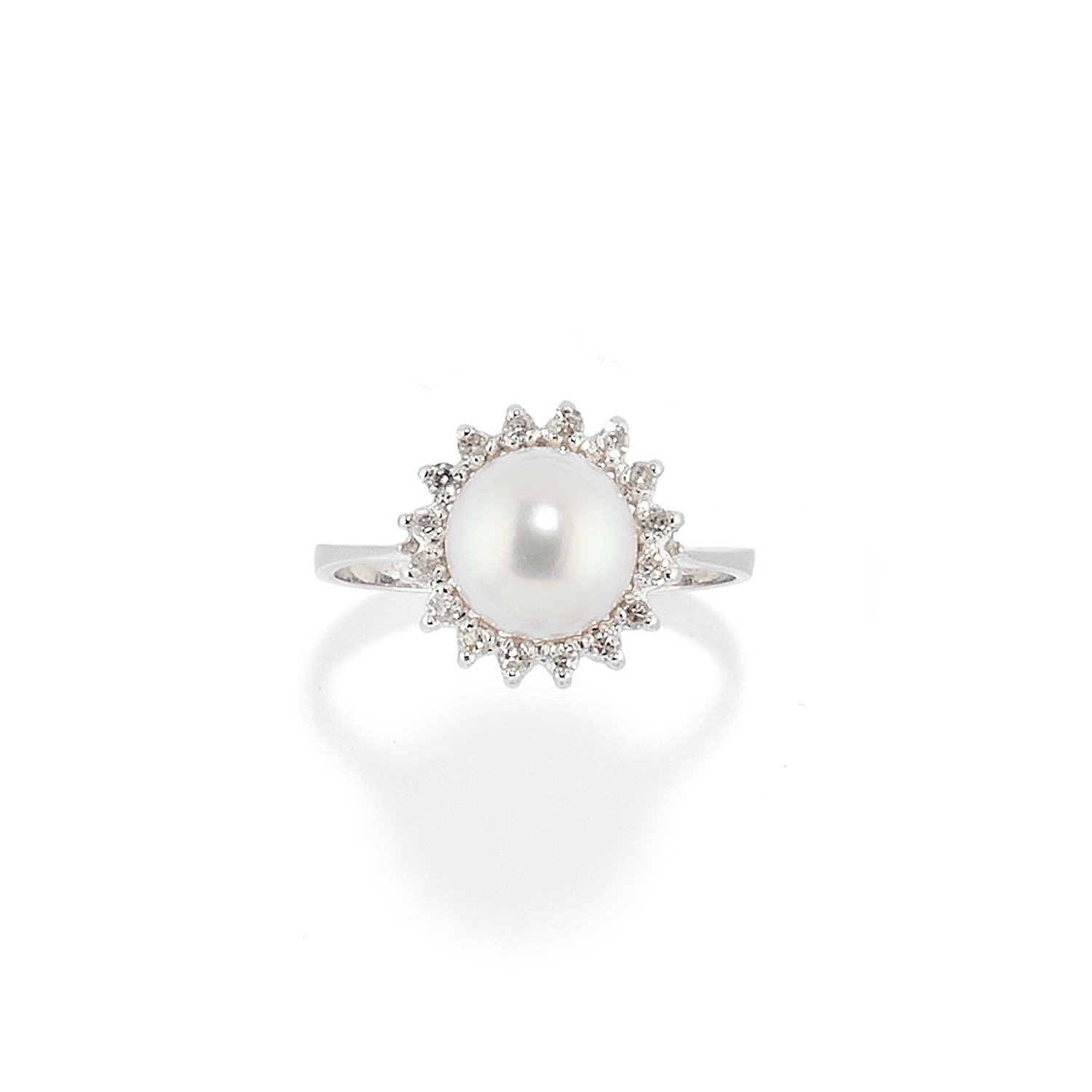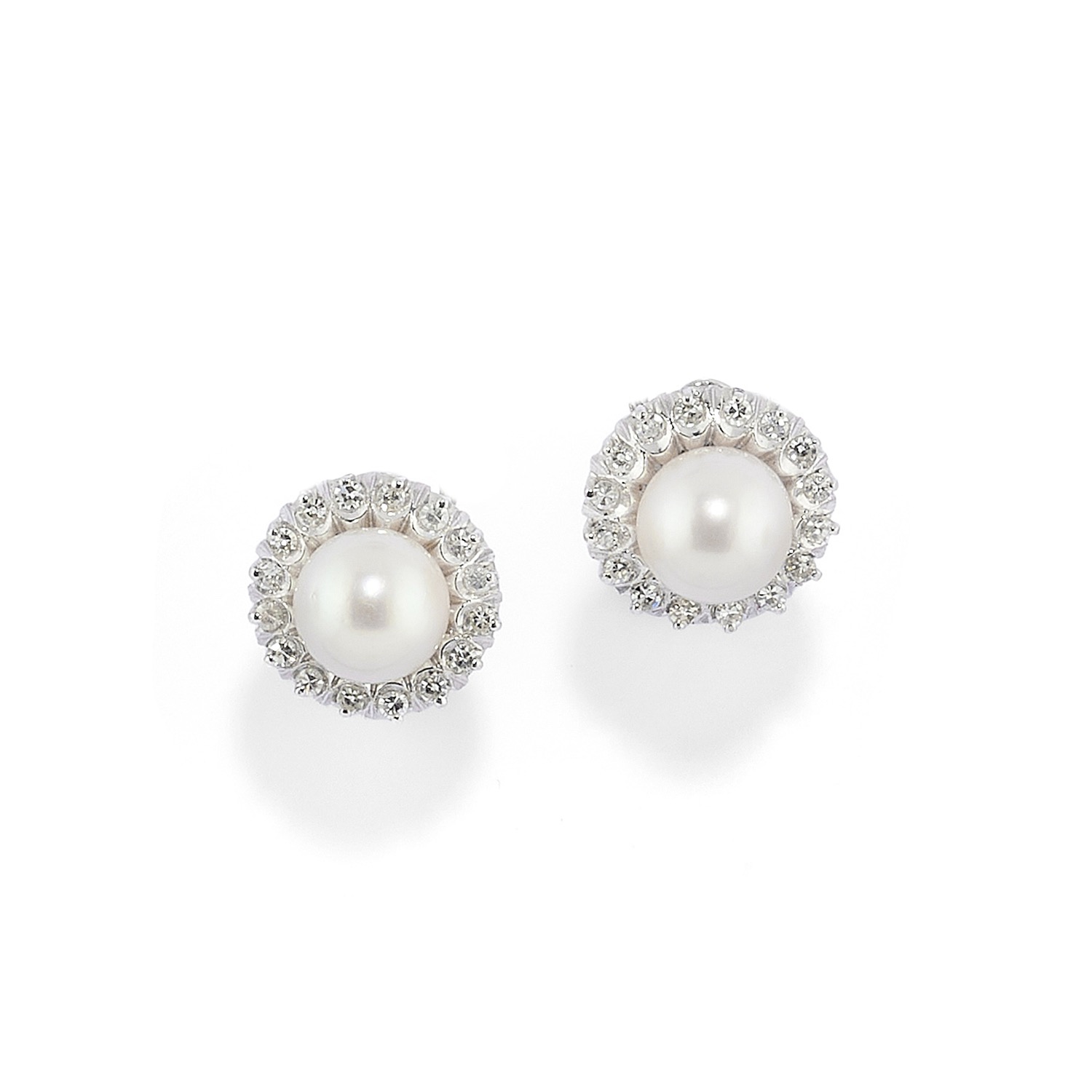 con perle coltivate di mm 8,50 circa e diamanti taglio huit-huit, chiusura a clip.