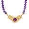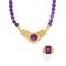 composta da collana ad un filo di boules in ametista di mm 8,00 circa con centrale con ametista con lavorazione a rilievo e anello con ametista di forma rettangolare a contorno ottagonale.