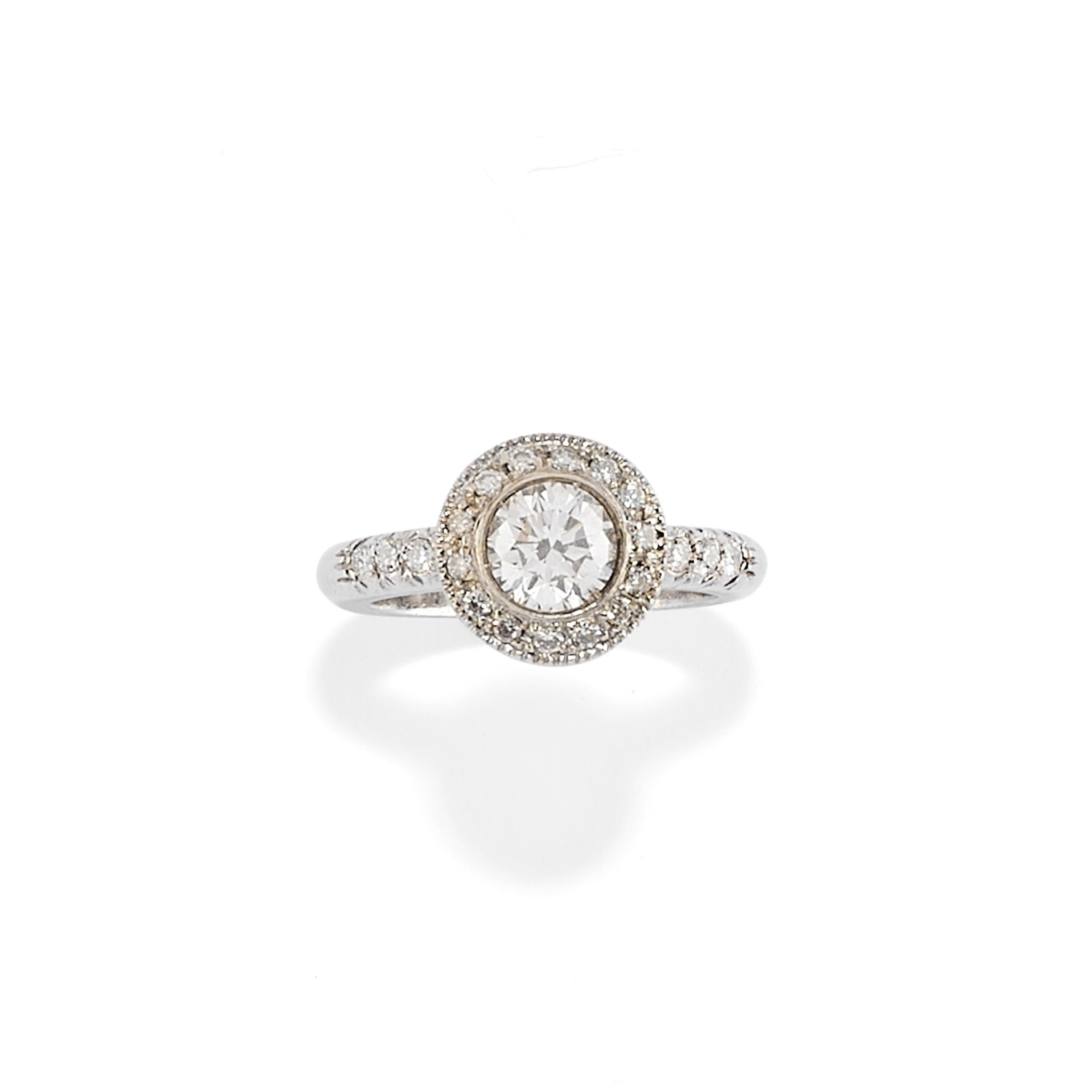 al centro diamante taglio brillante ct 0,70 circa e diamanti taglio brillante di contorno e sul gambo a decoro.