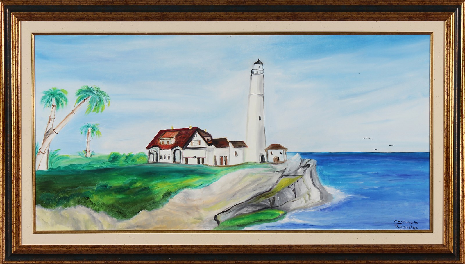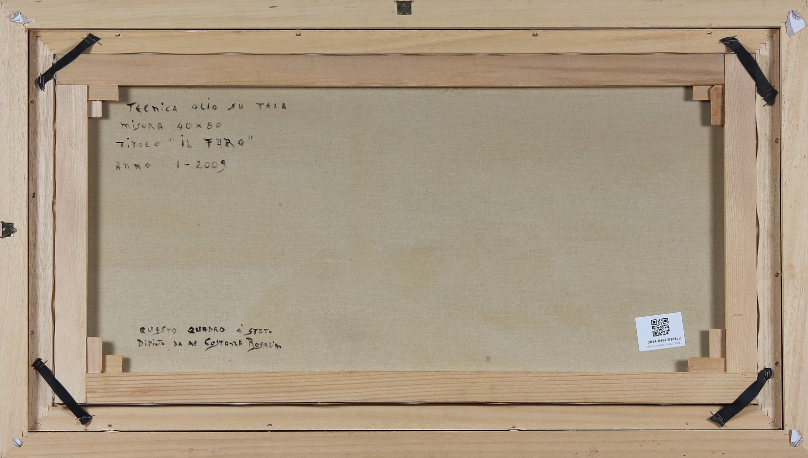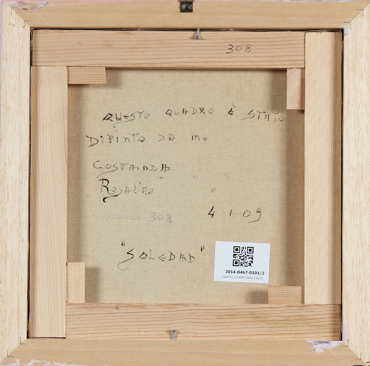 COSTANZA ROSALIA (n. 1955) Lotto di due opere. 2009. Olio su tela . . Soledad, cm 30x30, olio su tela. 2009. Firma in basso a destra. Al retro firma, anno e titolo, cornice presente; Il Faro, cm 40x80, olio su tela. Firma in basso a destra. Al retro firma anno e titolo. 2009. cornice presente.
