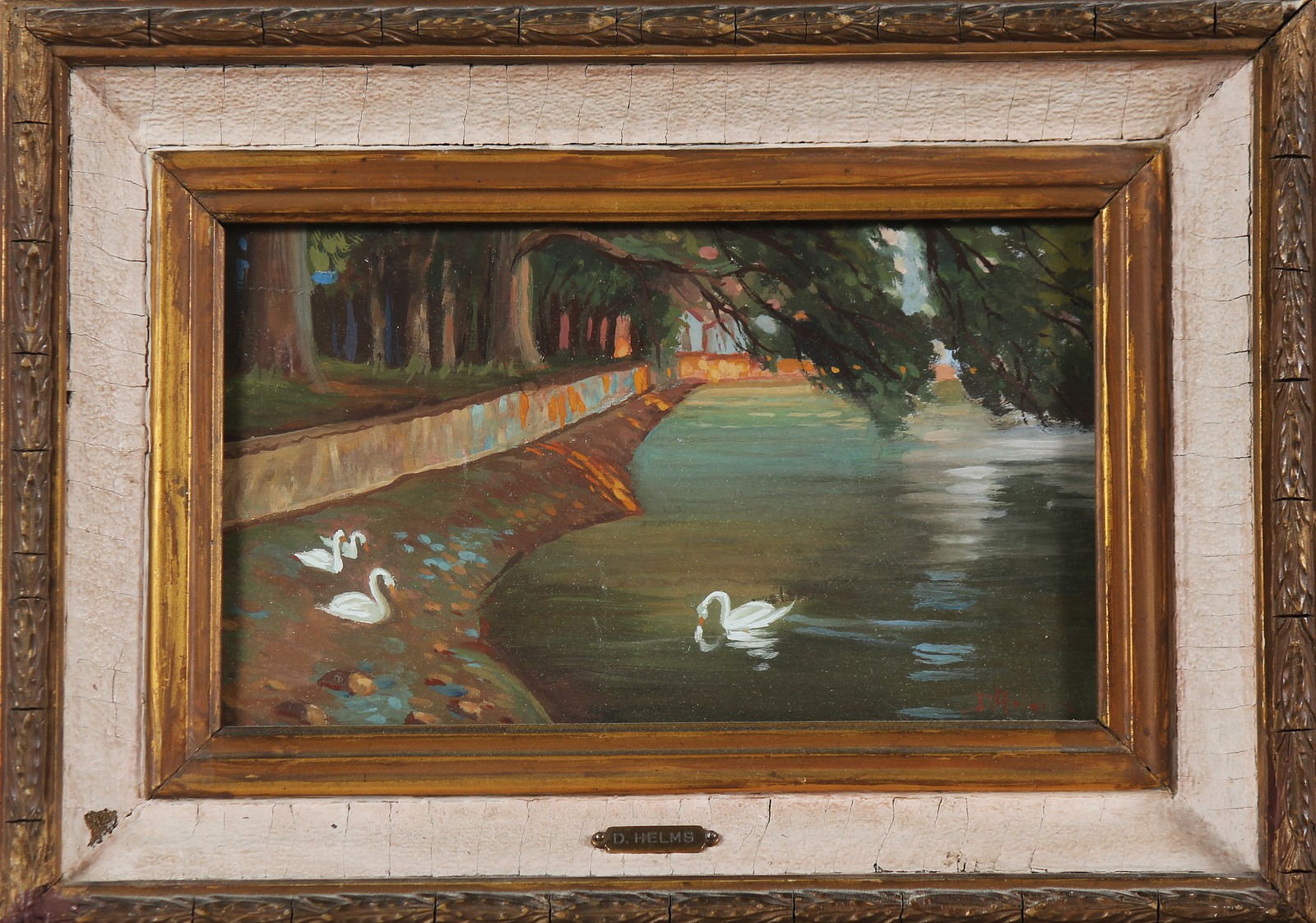 ANONIMO Senza titolo. . . Lotto composto da n.3 opere firmate D. HELMES. Olio su compensato 25x30, canale con ponte, autentica su fotografia di Remo Vestrucci; olio su cartone, 15x25, stagno con cigno, autentica su fotografia di Remo Vestrucci ; olio su cartone 15x25, mareggiata, autentica su fotografia di Remo Vestrucci.