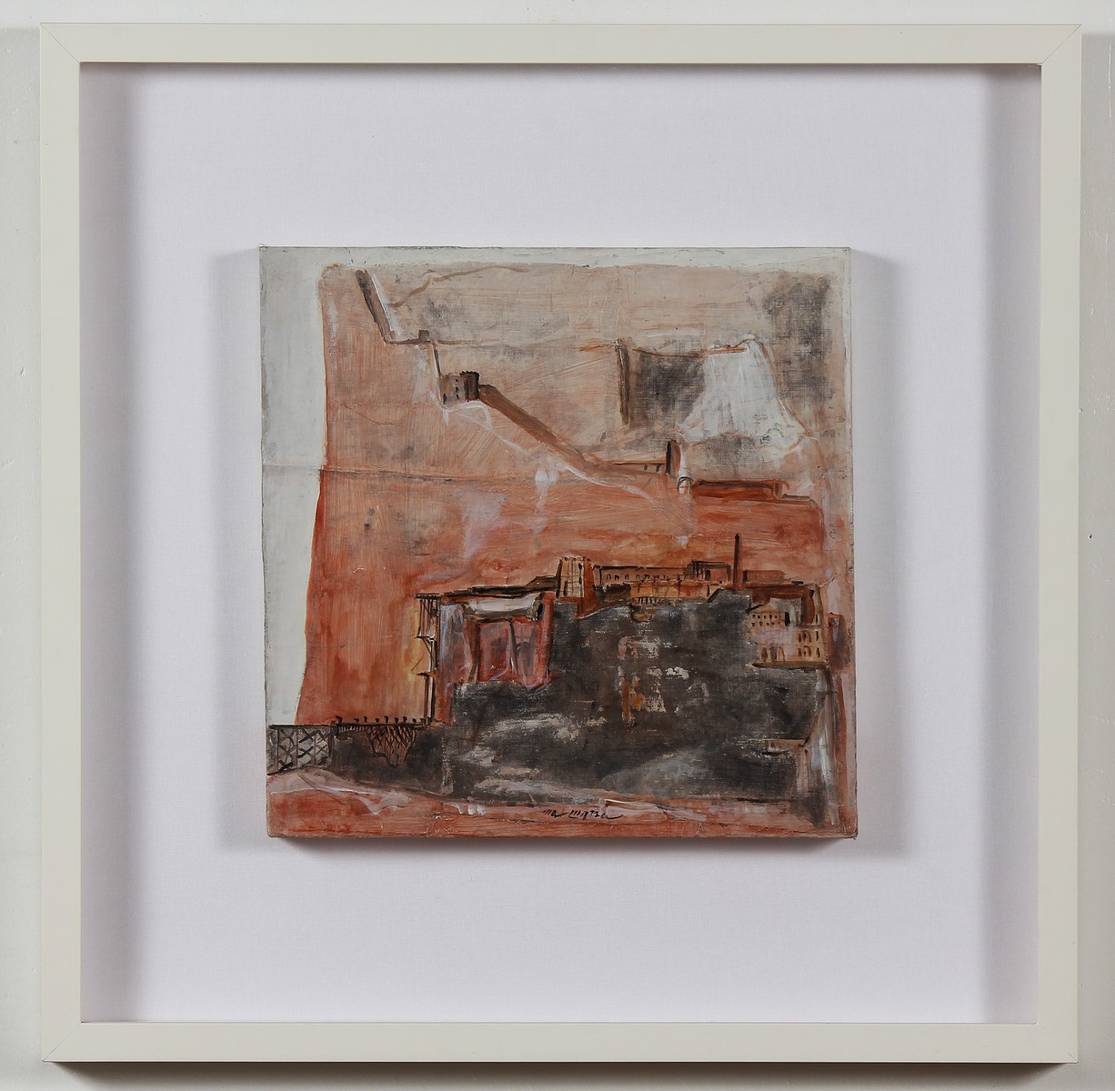MARRA MAX (n. 1950) La fortezza da il deserto dei tartari. tecnica mista su tela applicata su tavola. Cm 30,20 x 30,20. Firma in basso. Al retro titolo, firma e timbro galleria O arte, Lissone. Autentica dell' artista su fotografia. Cornice presente