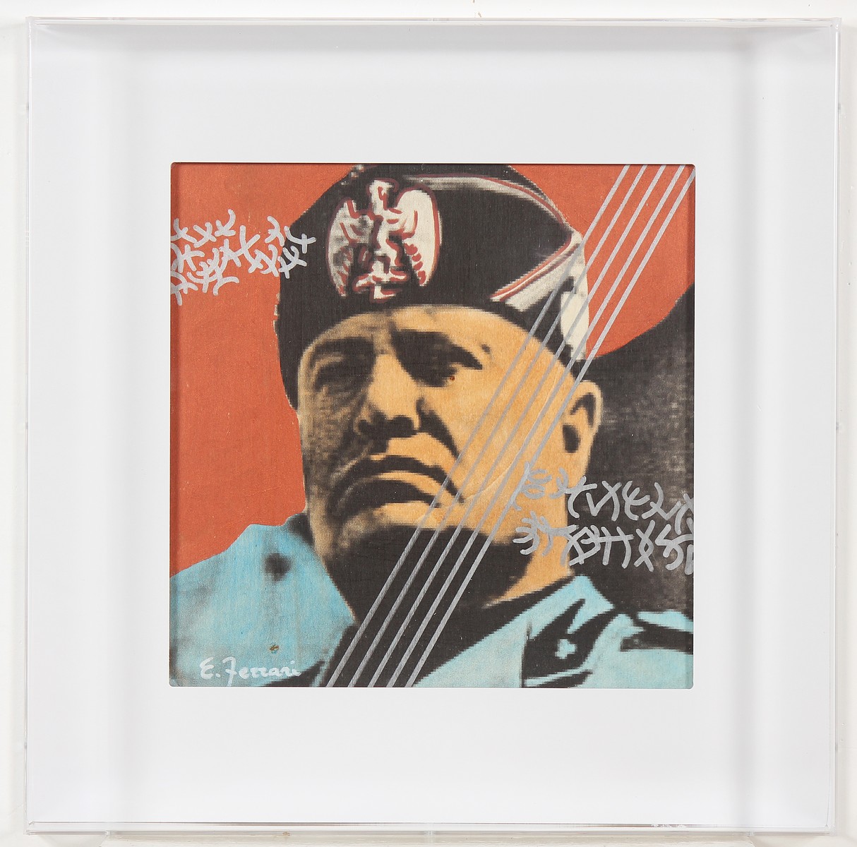 Lotto 525 | FERRARI ENZO Il duce. Tecnica mista su tavola. Cm 35,00 x 35,00. Firma in...
