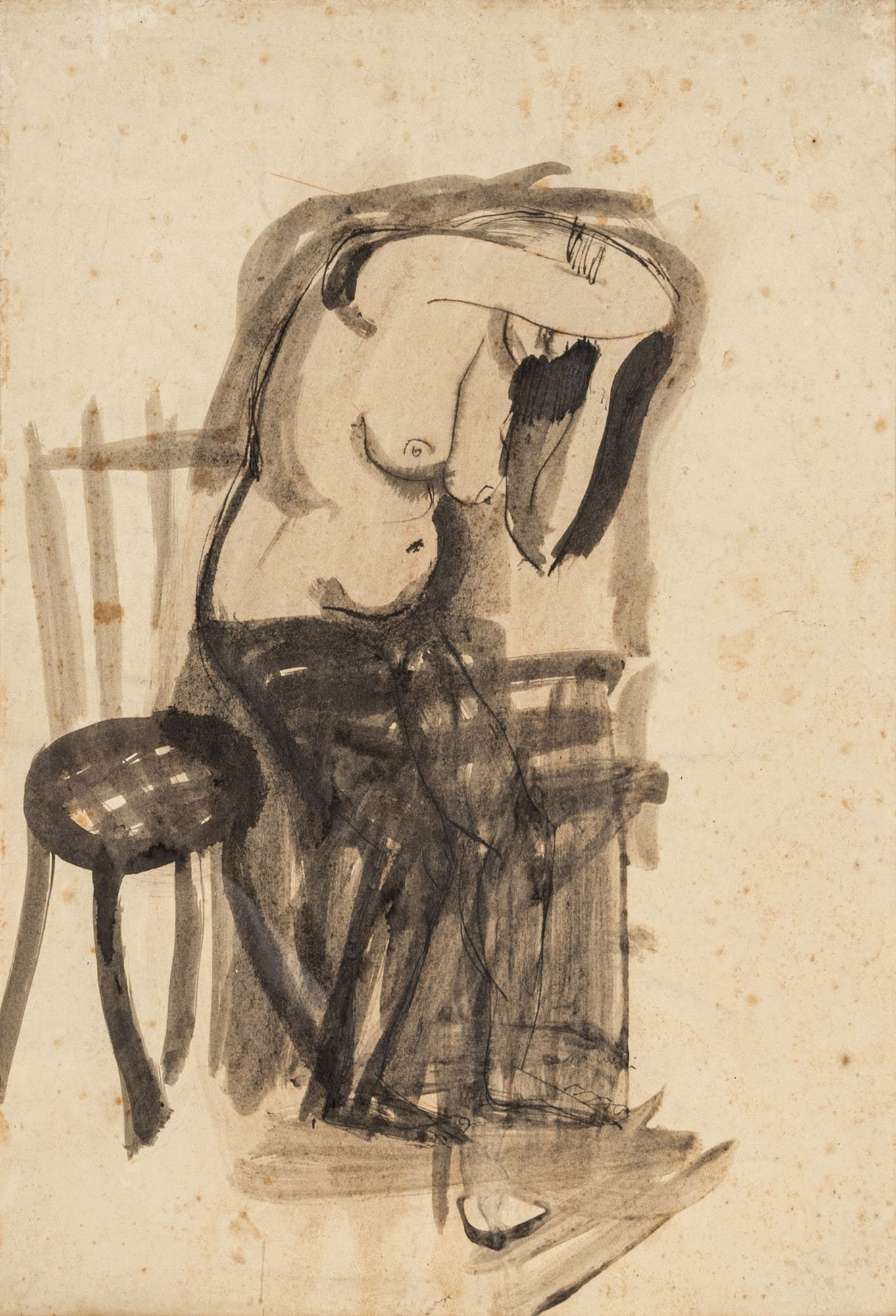 BRUNO CASSINARI(1912 - 1992)Senza titolo1945Acquerello su carta applicata su tela50,5 x 36,5 cmFirmato in basso al centroOpera accompagnata da autentica su fotografia firmata dall'artistaPROVENIENZA:Galleria Barsotti, Lido delle Nazioni (timbro su autentica)Collezione privata, Como