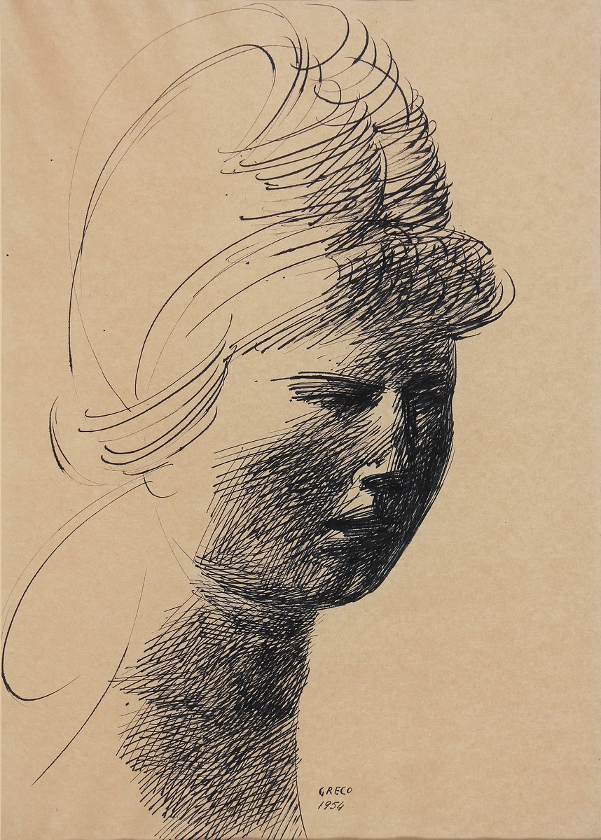 GRECO EMILIO (1913 - 1995) Senza titolo. 1954. Disegno a china su carta. Cm...