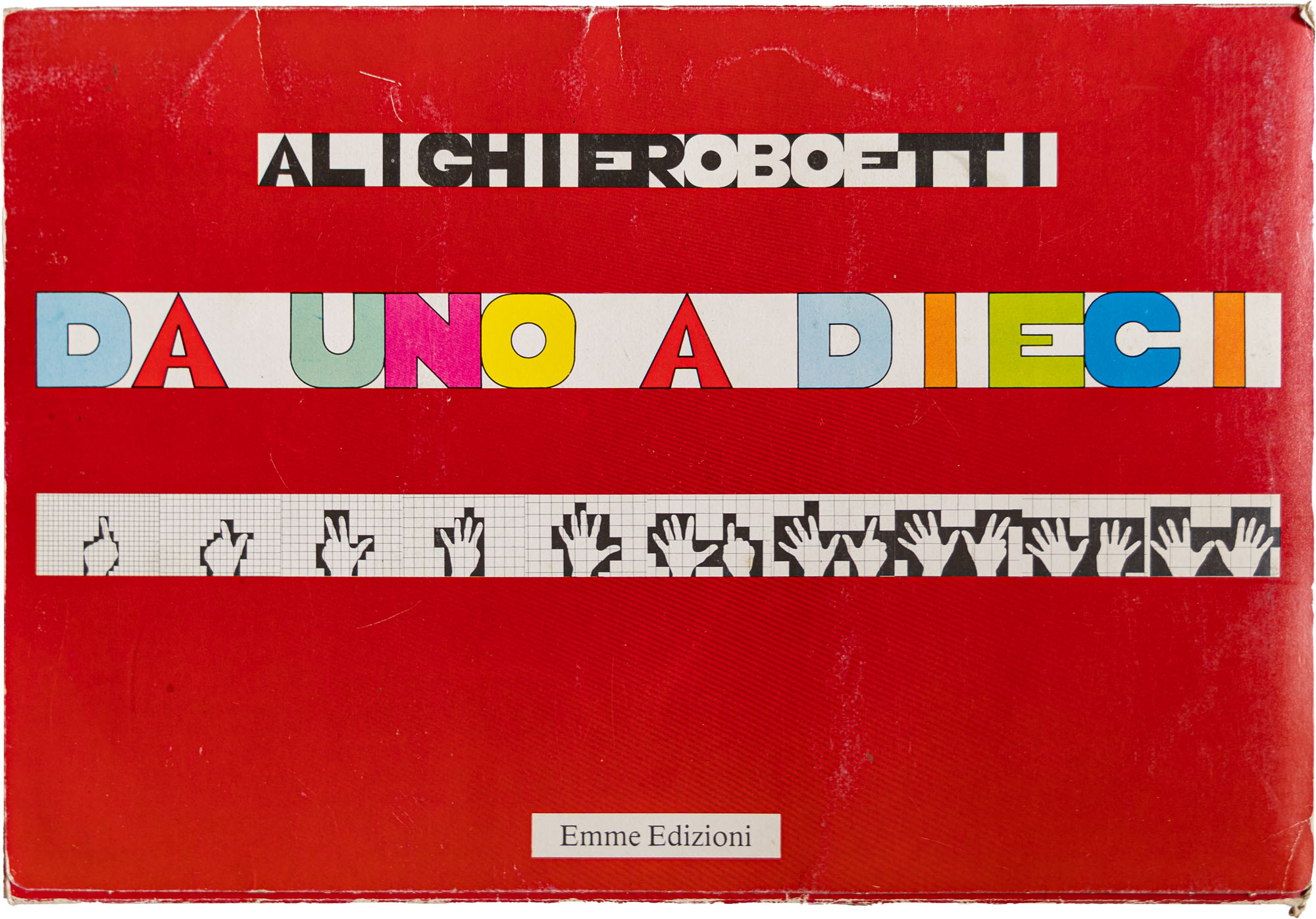 ALIGHIERO BOETTI(1940 - 1994)Da uno a dieci1980Cartella contenente 10 tavole a colori e 10 tavole quadrettate, ed. non numerataOgni tavola misura 23,8 x 36 cmEmme EdizioniPROVENIENZA:Collezione privata, MilanoBIBLIOGRAFIA:G. Maffei (a cura di), Il libro d'artista, 2003, p. 55 (ill.)AA. VV., Guardare, raccontare, pensare, conservare, catalogo edito in occasione della mostra presso la Casa del Mantegna, Mantova, 2004, p. 101 (ill.)M. Picciau, G. Maffei, Alighieroboetti, Tuttolibro, catalogo edito in occasione della mostra presso la Galleria Nazionale d'Arte Moderna, Roma,2004, p. 68 (ill.)L. Castagno, G. Cavaglià, L'arte del Novecento e il libro, catalogo edito in occasione della mostra presso il Palazzo Cisterna, Torino, 2004, p. 9, n. 13 (ill.)G. Maffei, Libri e documenti, Arte povera 1966-1980, Corraini Editore, 2007, p. 59 (ill.)Archivio Alighiero Boetti: https://www.archivioalighieroboetti.it/scheda/alighiero-boetti-da-uno-a-dieci-emme-edizioni-1980/