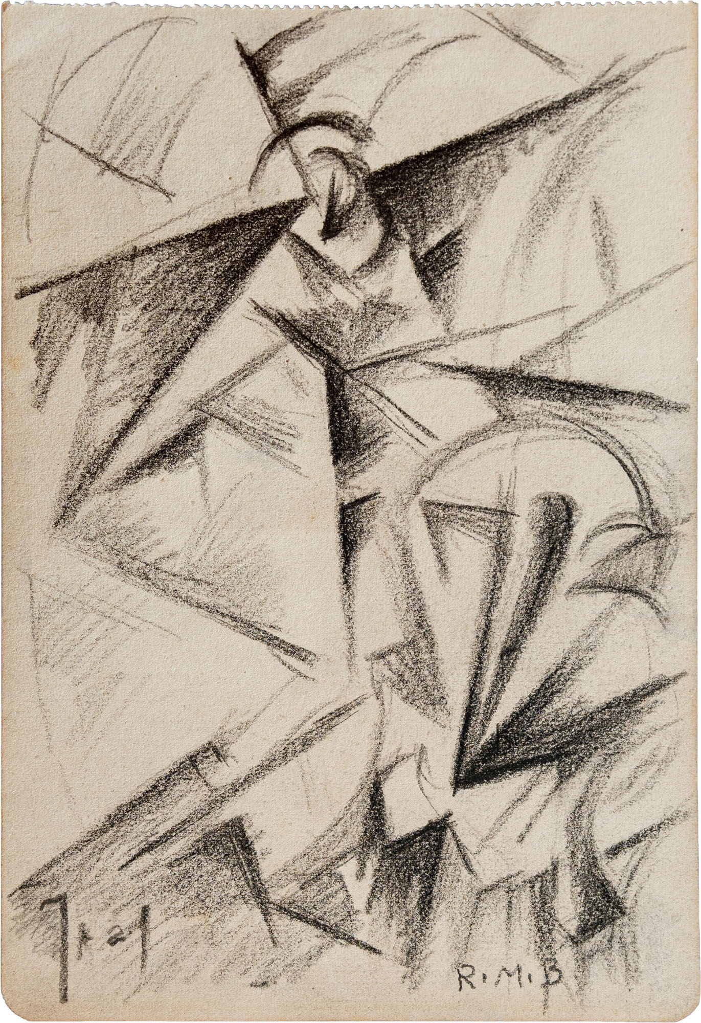 ROBERTO MARCELLO IRAS BALDESSARI(1894 - 1965)Sorvolo aerei + rifornimenti paracadutati1934 circaMatita grassa su carta18,3 x 12,5 cmSiglato in basso a destra e firmato in basso a sinistraOpera accompagnata da certificato di autenticità dell'Archivio Unico per il Catalogo delle Opere Futuriste di Roberto Marcello Baldessari, Rovereto a cura di Maurizio ScudieroPROVENIENZA:Collezione privata, Albissola Marina