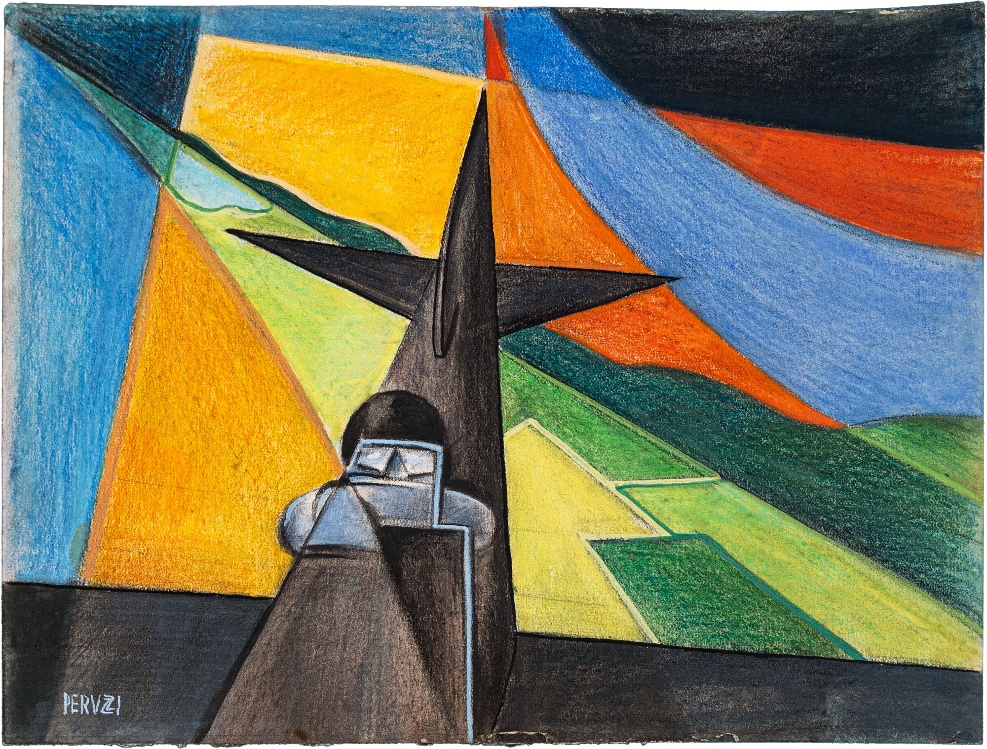 OSVALDO PERUZZI(1907 - 2004)L'uomo - aereoMetà anni '30Pastelli e tempera su cartoncino17 x 22,5 cmFirmato in basso a sinistraOpera accompagnata da certificato di autenticità a cura di Massimo DurantiPROVENIENZA:Collezione privata, Albissola Marina