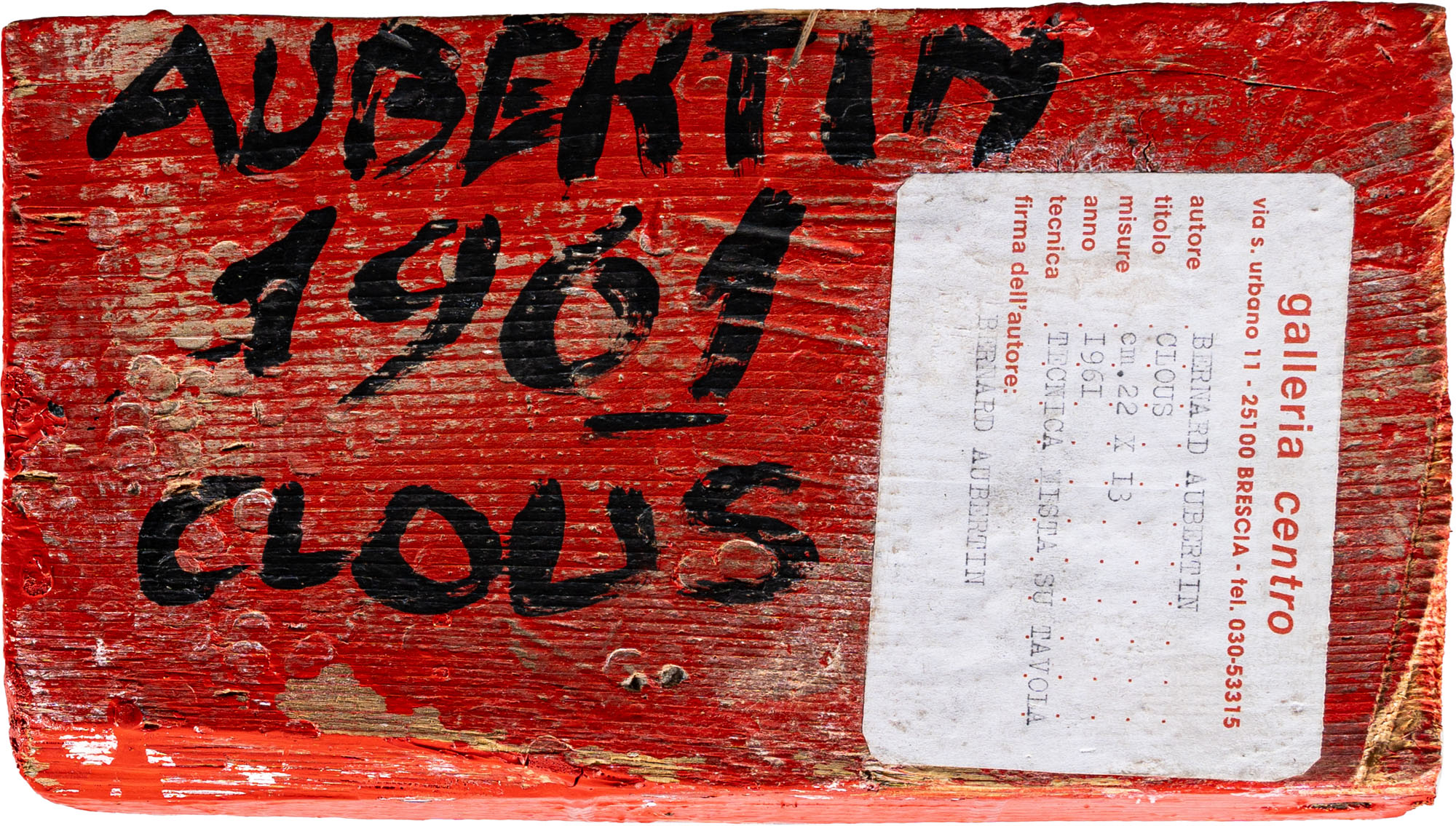 BERNARD AUBERTIN(1934 - 2015)Tableau clous1961Chiodi su tavola, esemplare unico22 x 13 x 6,5 cmFirma, data e titolo al retroOpera accompagnata da certificato di autenticità a cura dell'Archivio Opere Bernard Aubertin, BresciaPROVENIENZA:Galleria Centro, Brescia (etichetta al retro)Collezione privata, Pavia