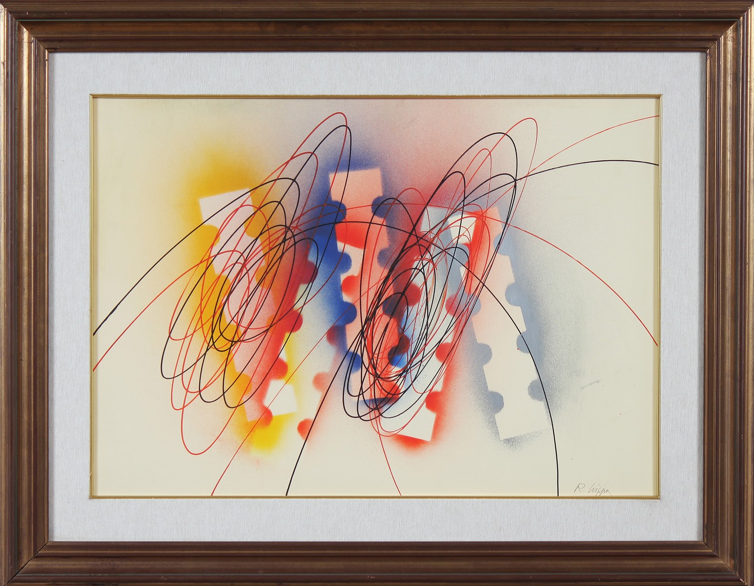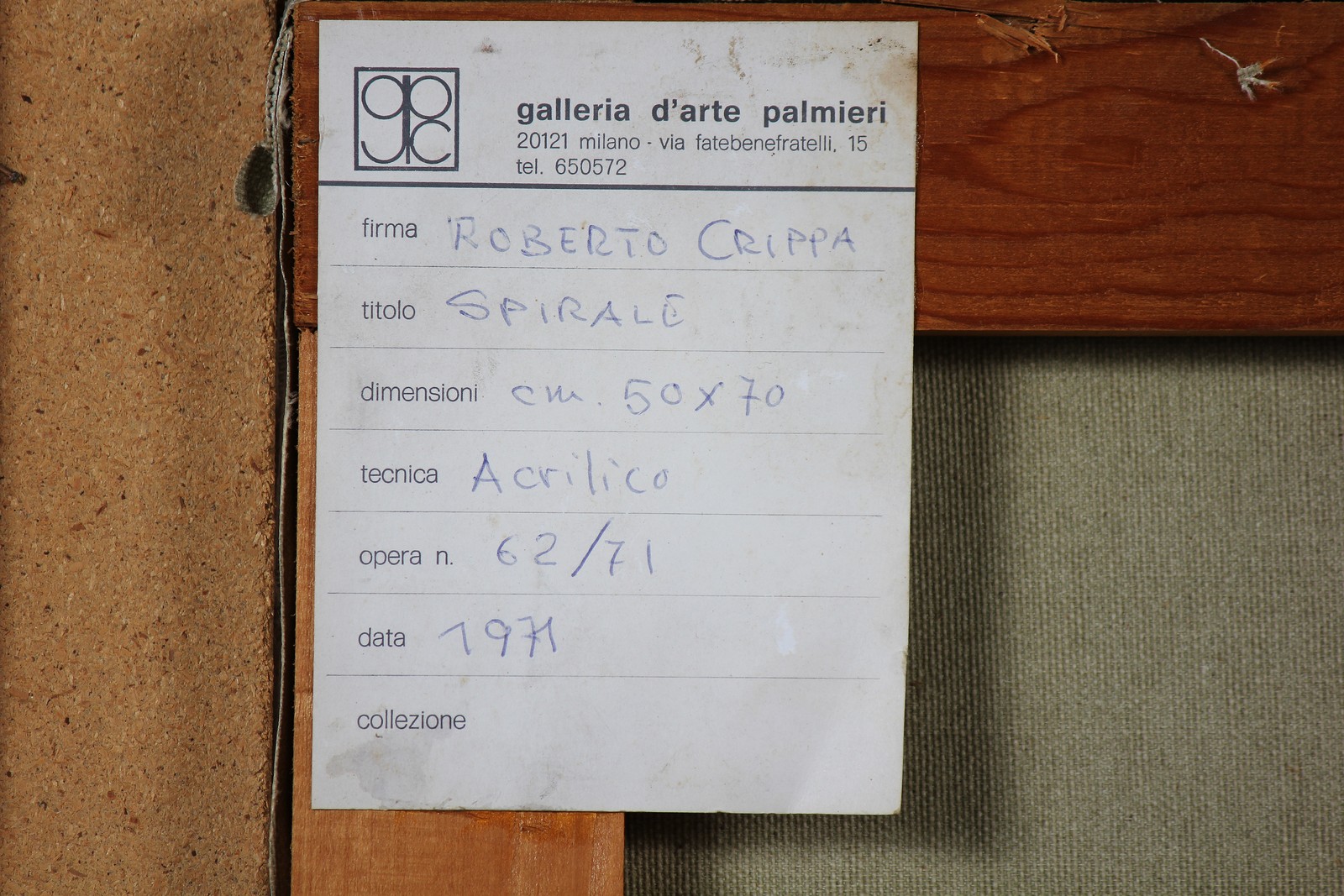 CRIPPA ROBERTO GAETANO (1921 - 1972) Spirale. 1971. Acrilico su carta incollata su tela. Cm 70,00 x 50,00. Firma in basso a destra. Al retro cartiglio descrittivo della galleria d'arte Palmieri, Milano. Cornice presente
