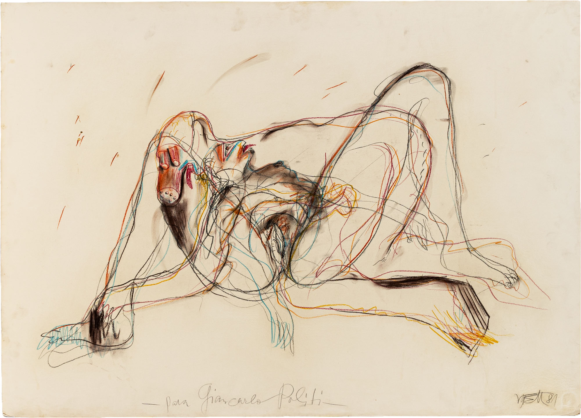 WOLF VOSTELL(1932 - 1998)Senza titolo1981Tecnica mista su cartone73 x 102 cmFirmato e datato in basso a destraDedicato in basso al centro 'Per Giancarlo Politi'PROVENIENZA:Collezione privata, Milano