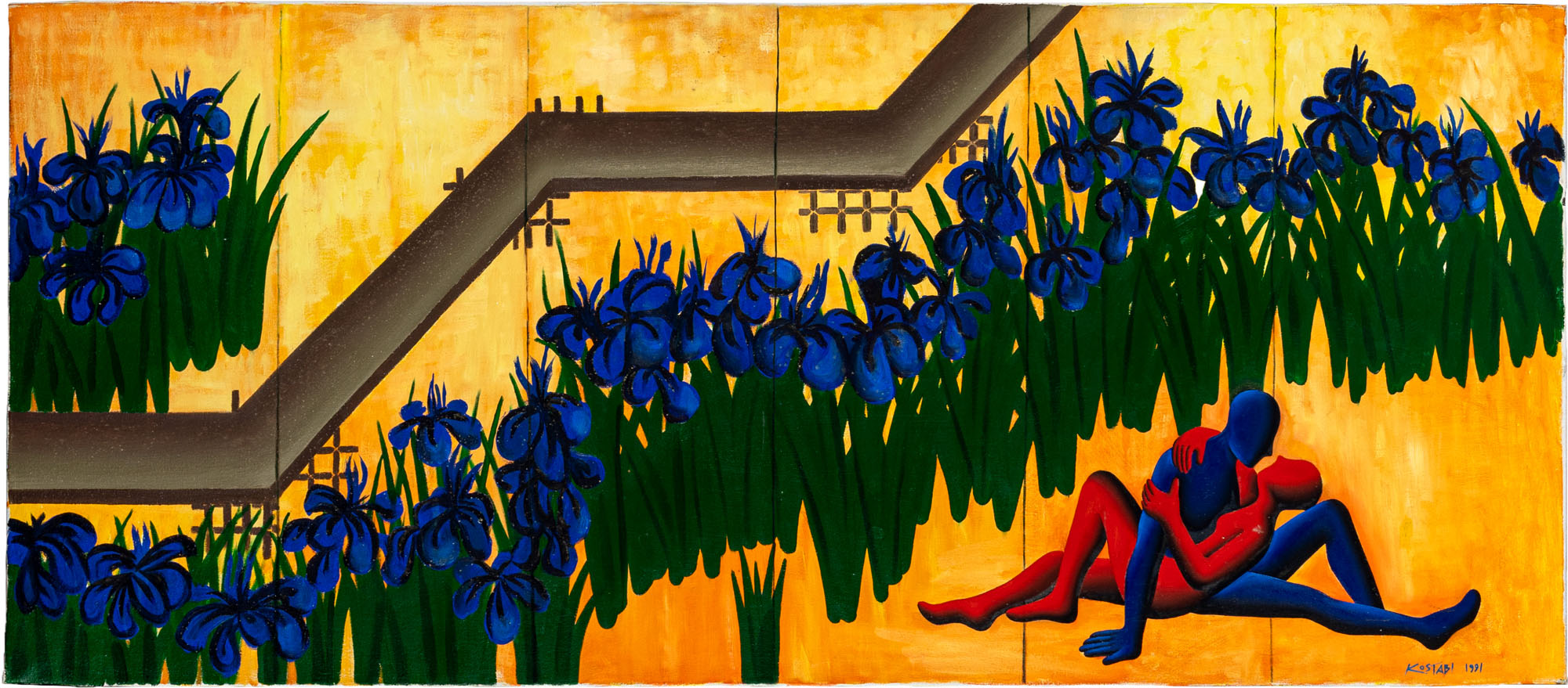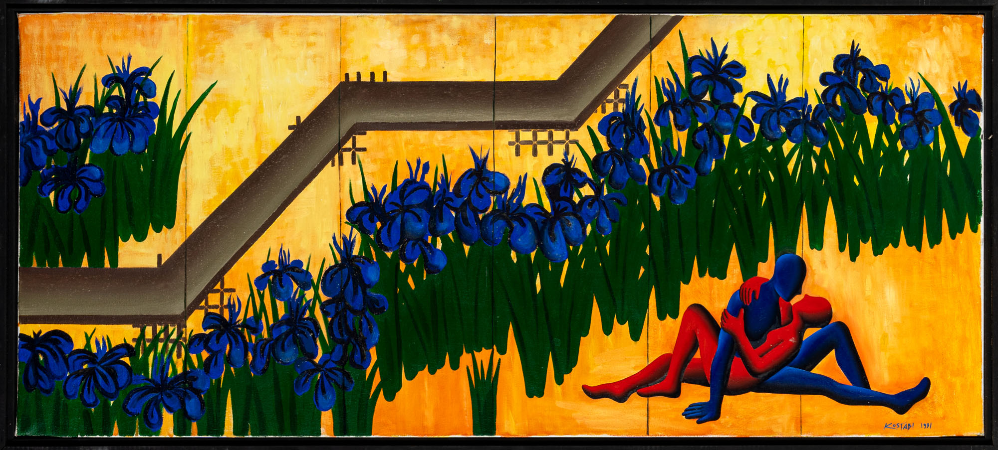 MARK KOSTABI(1960)The red iris1991Olio su tela66,5 x 151,5 cmFirmato e datato in basso a destraFirma, data e titolo al retroPROVENIENZA:Collezione privata, Milano