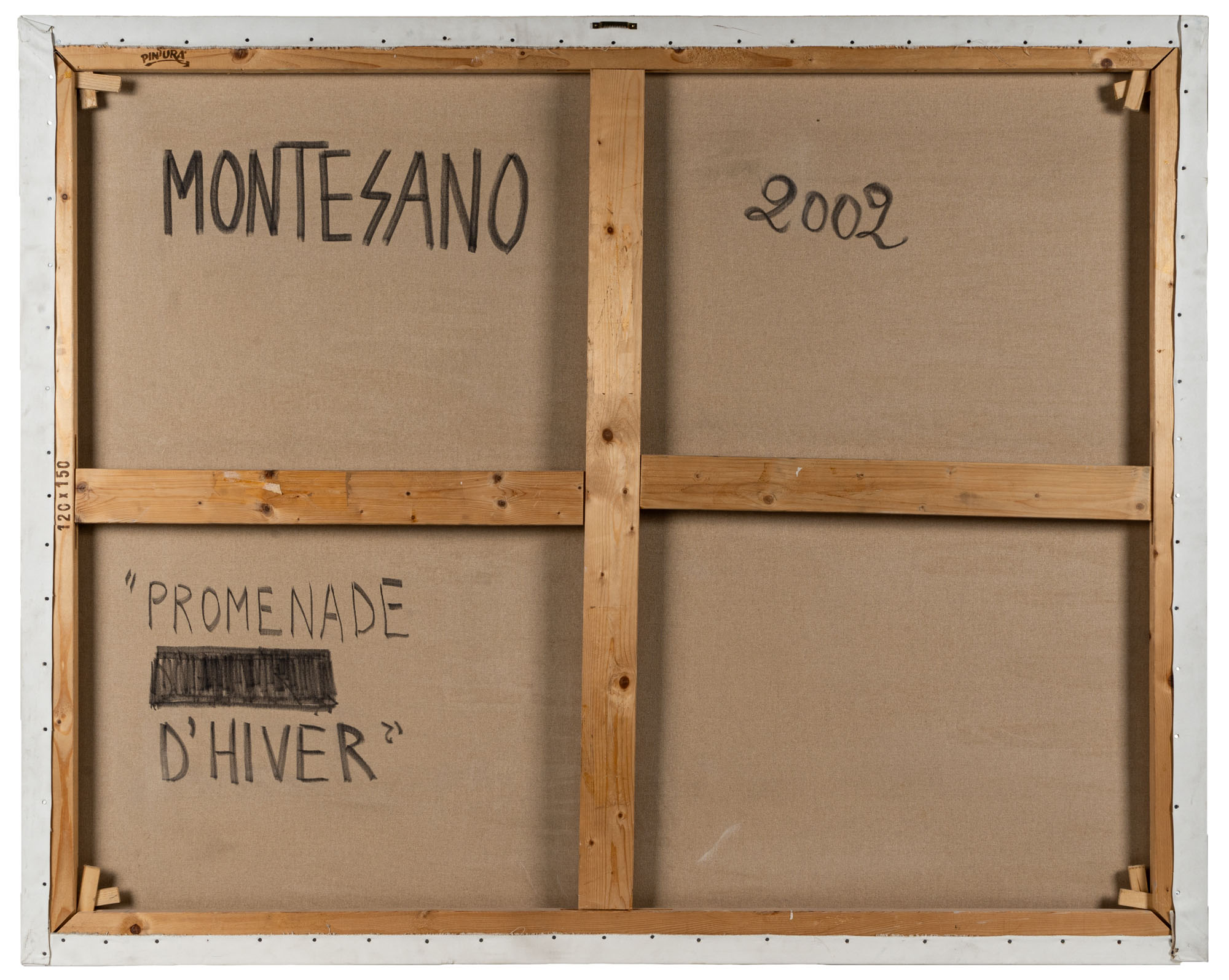 GIAN MARCO MONTESANO(1949)Promenade d'hiver2002Olio su tela120 x 150 cmFirma, data e titolo al retroOpera accompagnata da certificato di autenticità firmato dall'artistaPROVENIENZA:Collezione privata, Milano