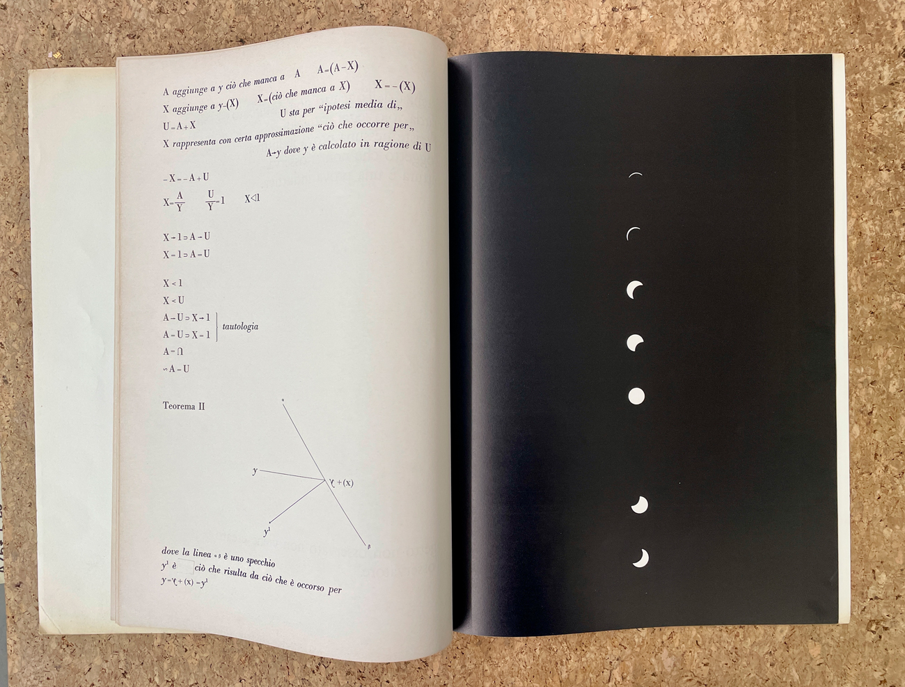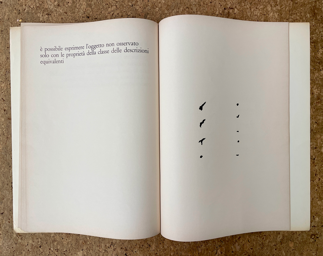 Rara edizione d'arte recante testo introduttivo di Vincenzo Agnetti, otto tavole in bianco e nero di Claudio Parmiggiani e testi di Corrado Costa