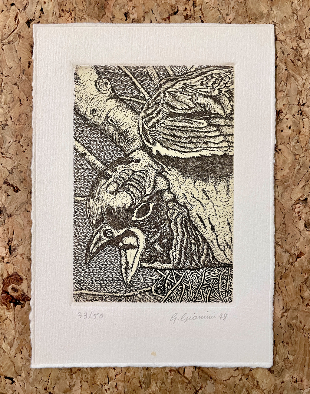 - Edizione d'arte con una poesia di Edgar Lee Masters e un'acquaforte sciolta di Giuseppe Giannini recante firma e numerazione a matita al fronte (1978)
