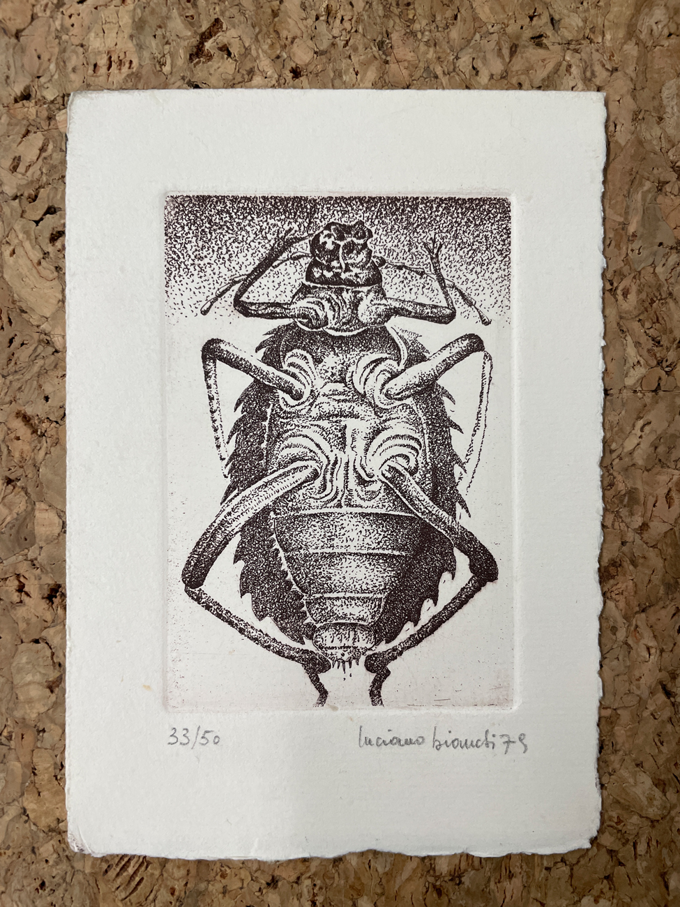 - Edizione d'arte con una poesia di Giorgio Seveso e un'acquaforte sciolta di Luciano Bianchi recante firma e numerazione a matita al fronte (1979)