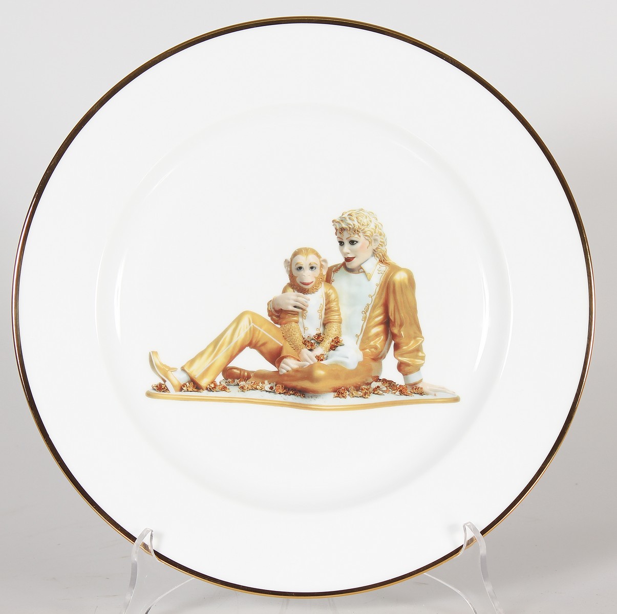 KOONS JEFF (n. 1955) Micheal Jackson and bubble. Porcellana. Cm 29,50 x 29,50. 4500 limited edition. Al retro firma a stampa.Prodotto in occasione dei 150 anni di Bernadaud porcellane. Contenuto in confezione originale.