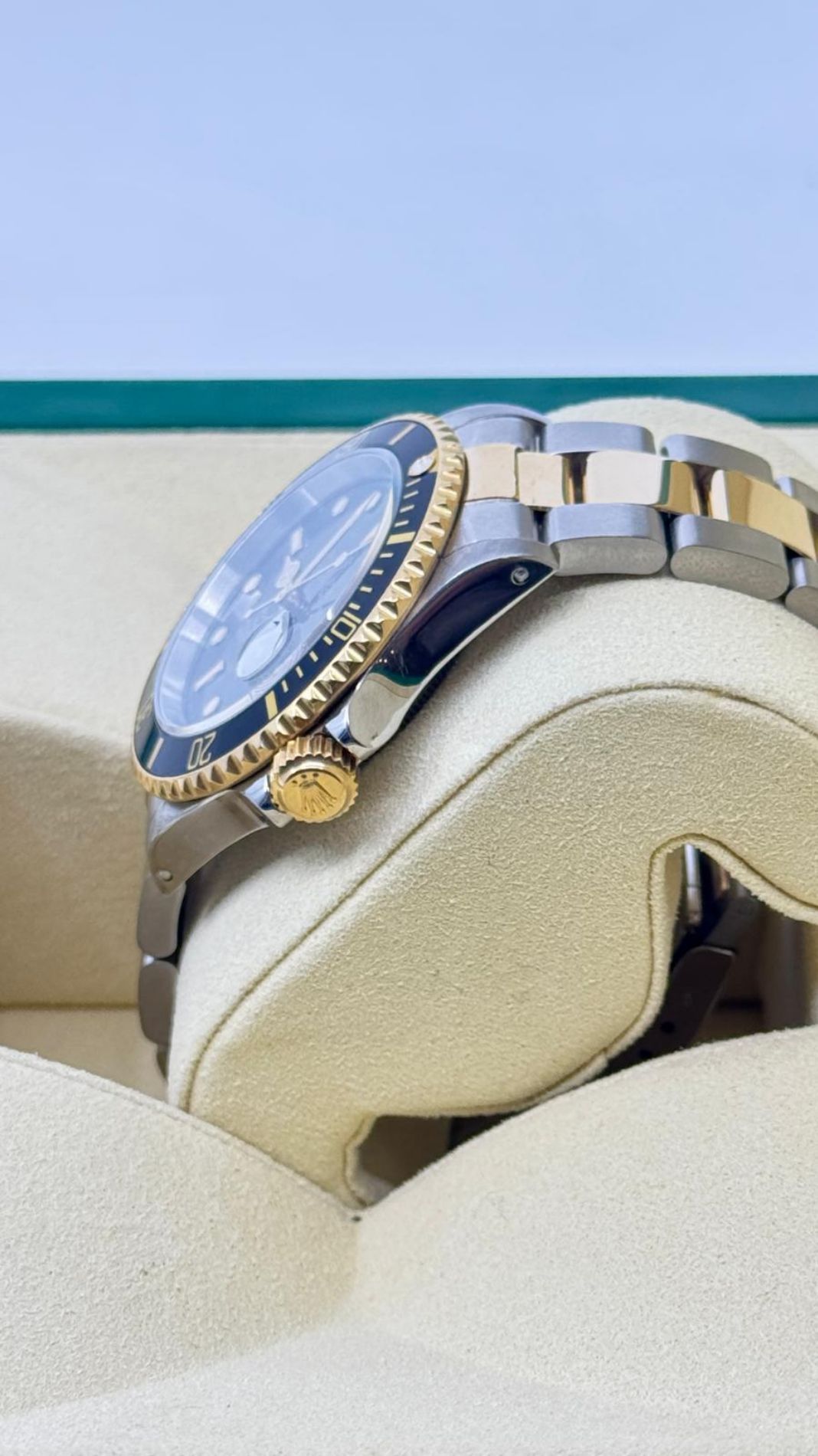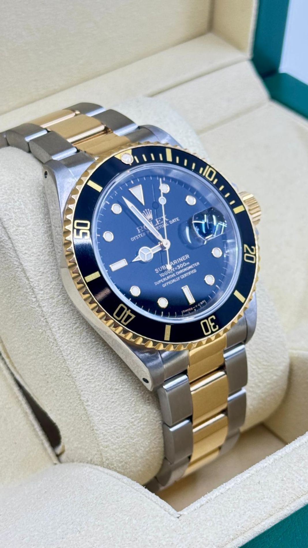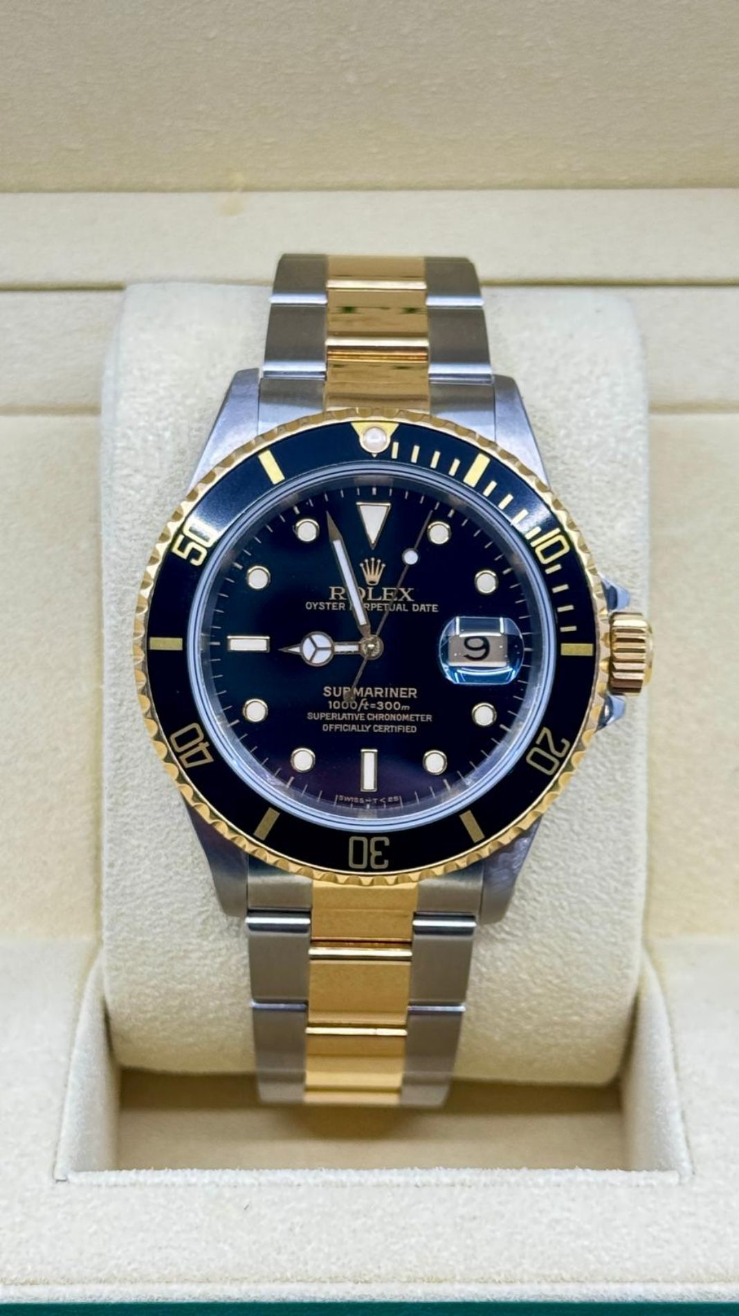 Marca Rolex Modello (Orologio) Submariner Date Numero di referenza 16613 Carica Automatico Materiale della cassa Oro/Acciaio Materiale cinturino Oro/acciaio Anno 1998 Condizione Usato (Ottimo) L'articolo presenta segni di usura lievi, come ad esempio graffi leggeri, ma non percepibili al tatto. Corredo documenti originali, no box la scatola è utilizzata solo per foto non in vendita Materiale della cassa Oro/Acciaio Diametro 40 mm Impermeabile 30 ATM Materiale lunetta Oro giallo Vetro Vetro zaffiro Quadrante nero Materiale cinturino Oro/acciaio Colore cinturino Oro/acciaio Chiusura Déployante Funzioni Data - COMMISSIONE D’ASTA 25%